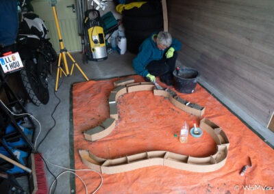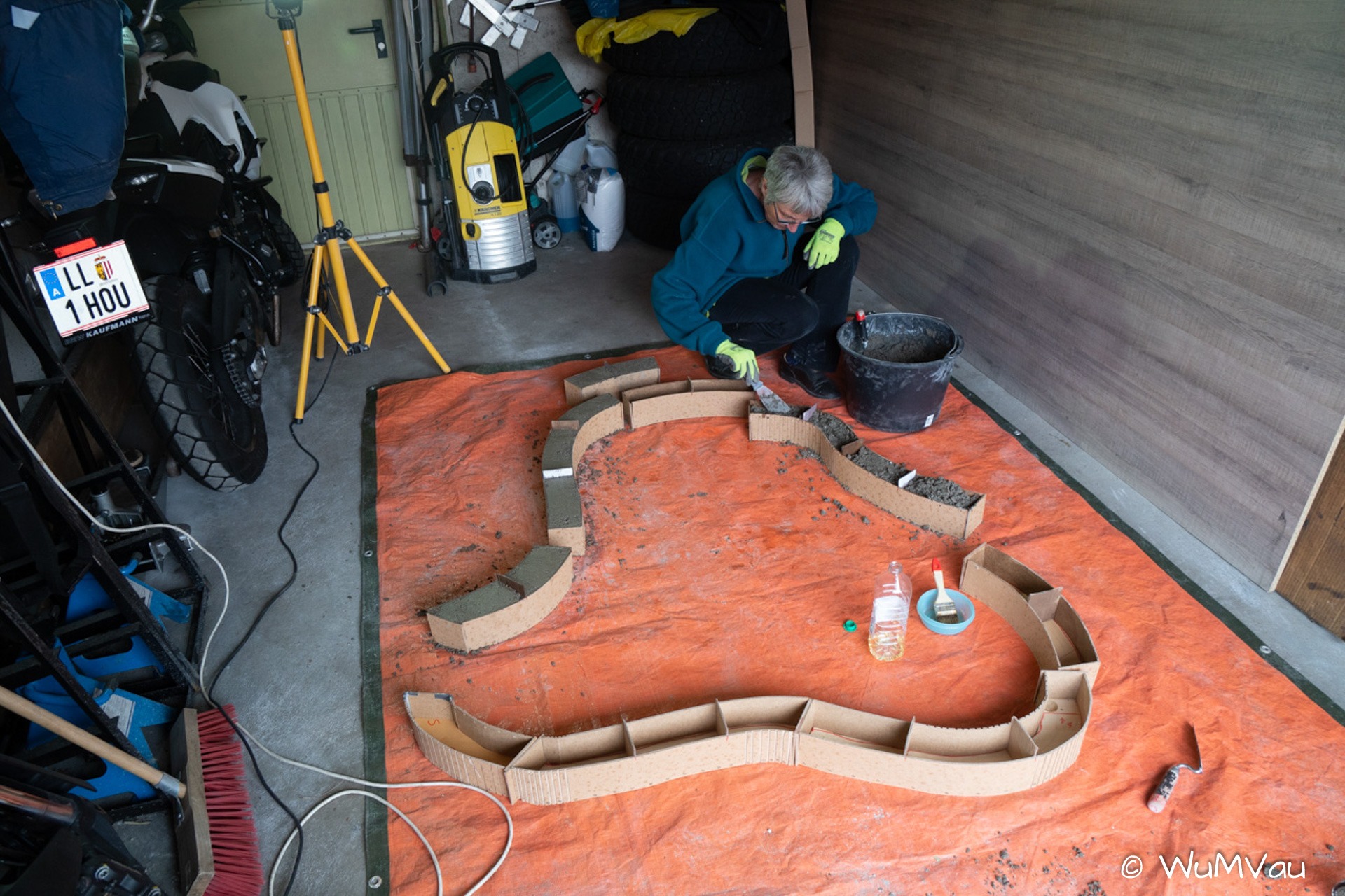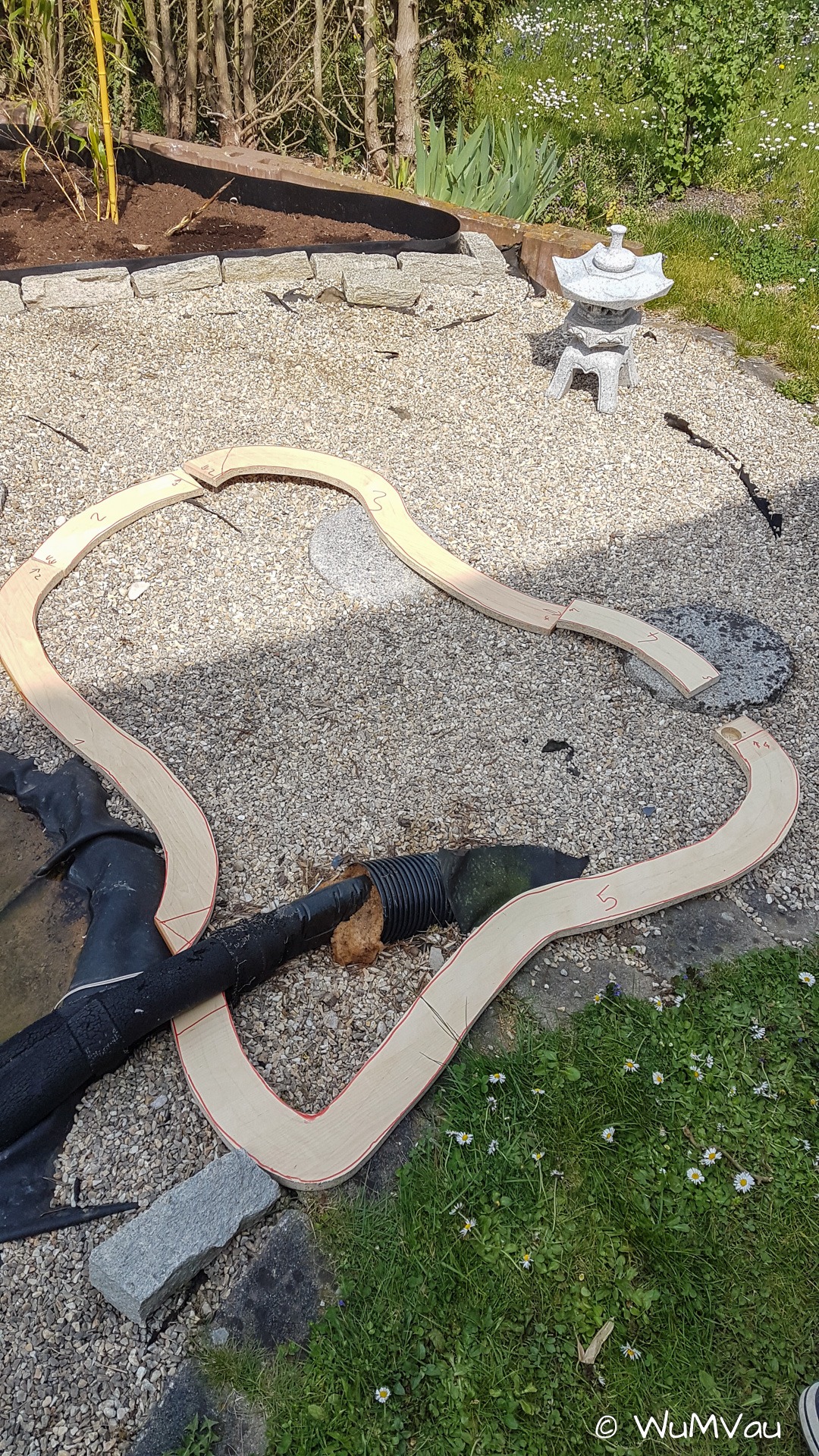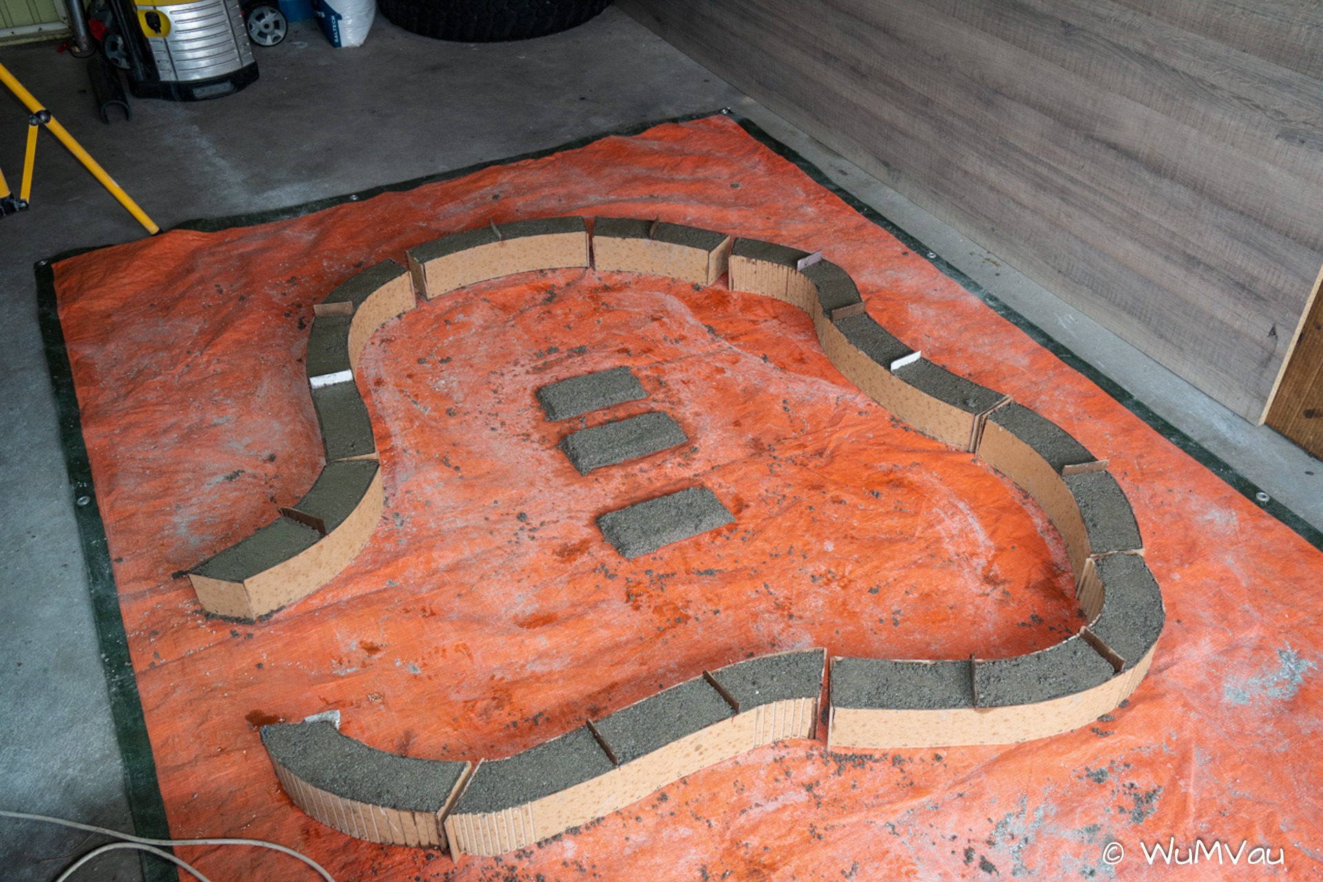 Fertig verlegte Hypertufa-Steine (Die beiden Rohre sind für die Teichheizung aus der Solaranlage)