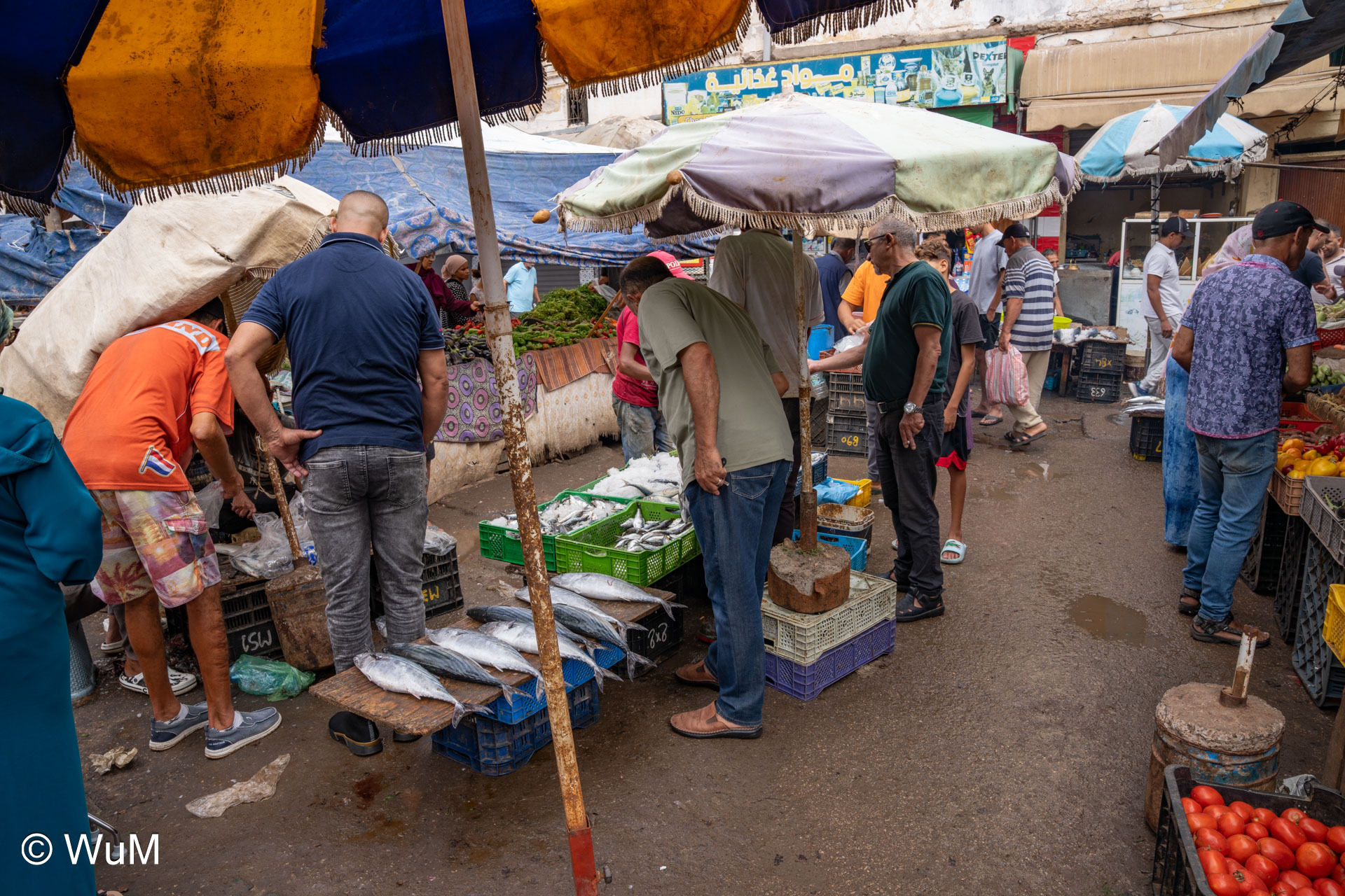 Heute besuchen wir die Stadt El Jadida. Einst von den Portugiesen erobert, ist die Media heute UNESCO Weltkulturerbe. Wir umrunden die Medina auf der Stadtmauer und genießen die Aussicht. Dann stürzen wir uns in das ganz normale Gewühl in der Altstadt. Der Zustand für ein Weltkulturerbe ist allerdings nicht besonders gut.