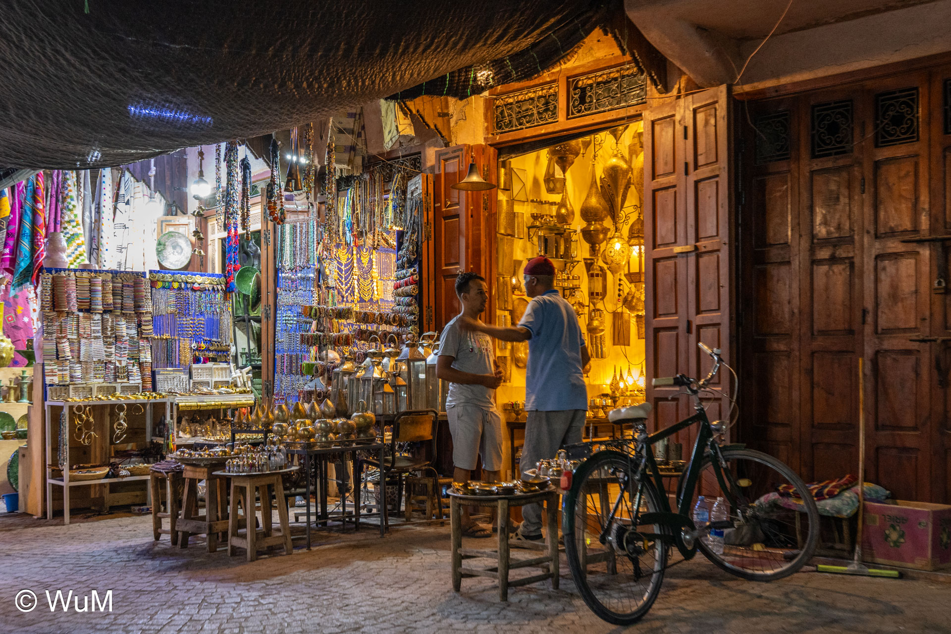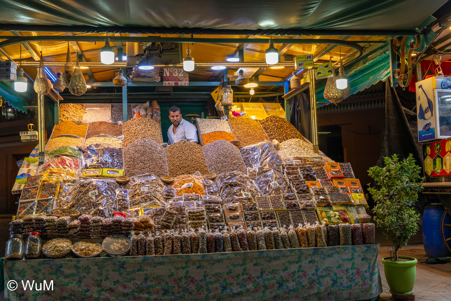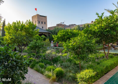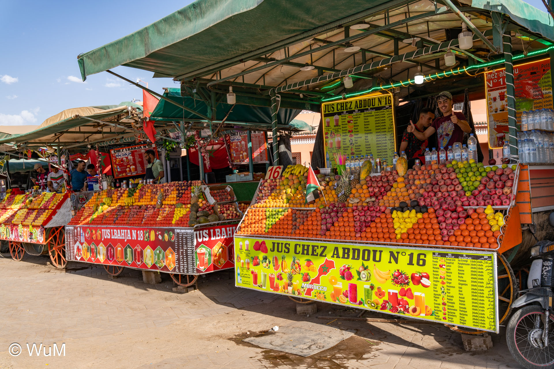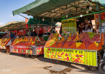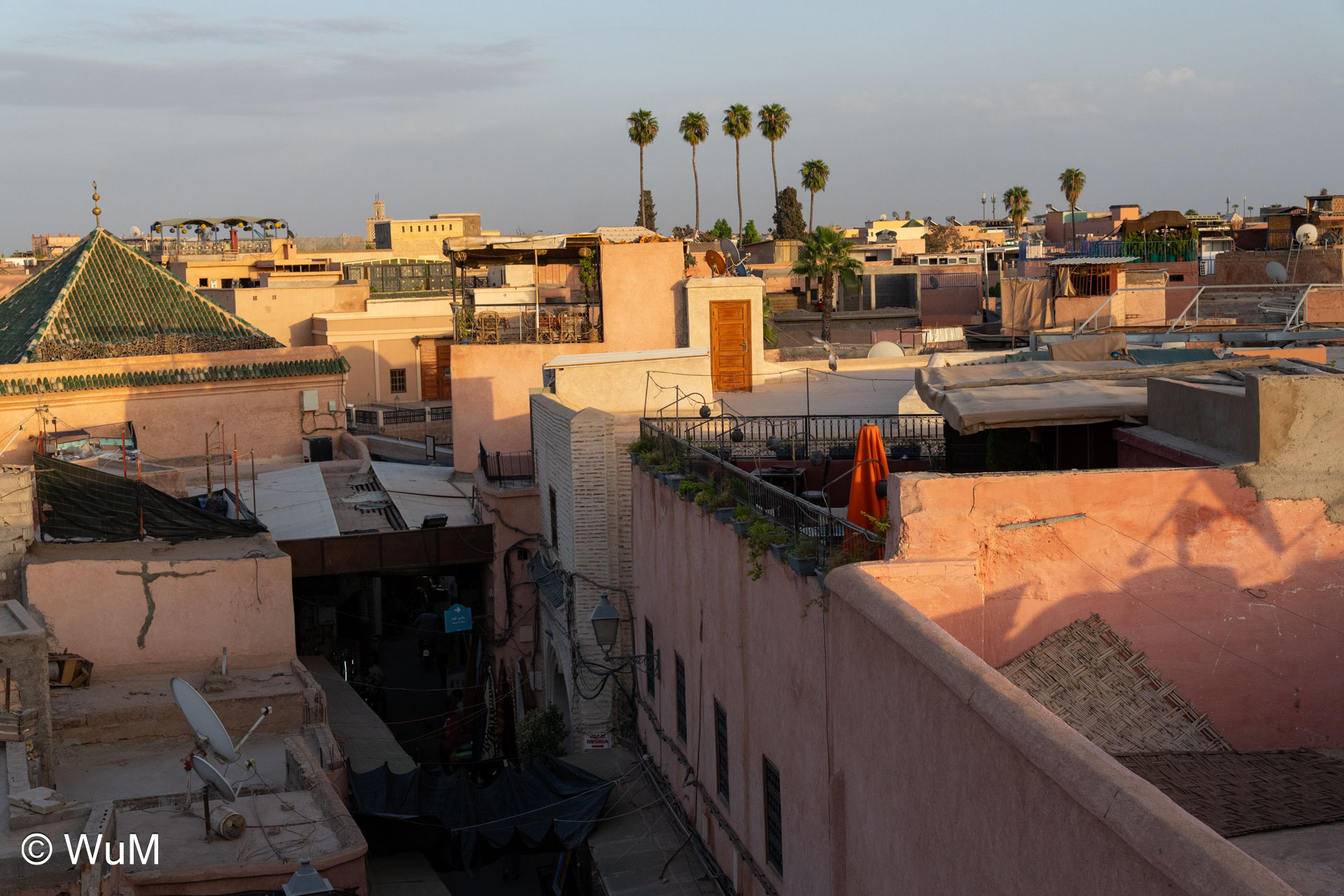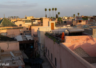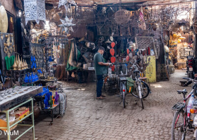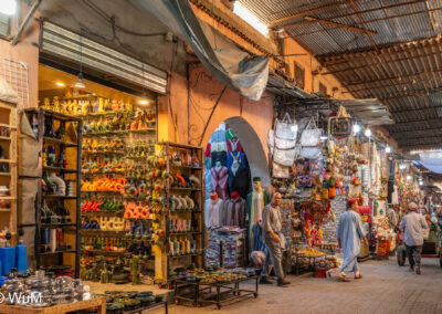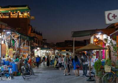 Am nächsten Tag wollen wir den Jardin Majorette besuchen. Vor dem Eingang stehen bereits Schlangen und wir müssten für den nächsten freien Slot mehrere Stunden warten. Wir verzichten auf den Besuch und gehen durch die Souks wieder zurück zum Jemaa el Fna. Dabei gehen wir keine einzige Gasse, die wir am Vortag gegangen sind. Die Souks von Marrakech sind die größten Marrokos.