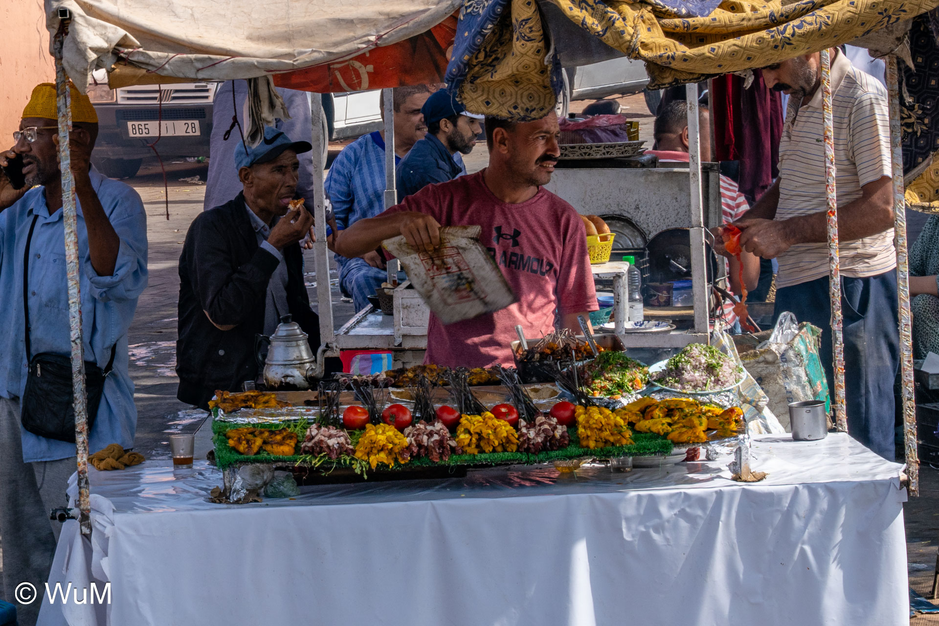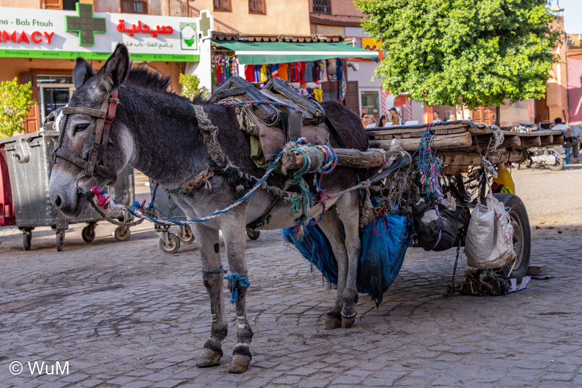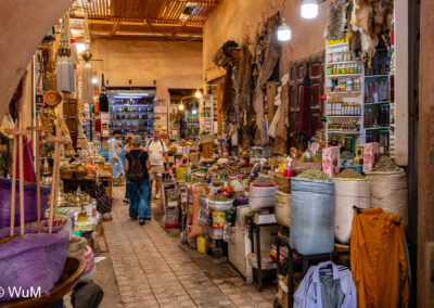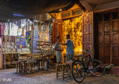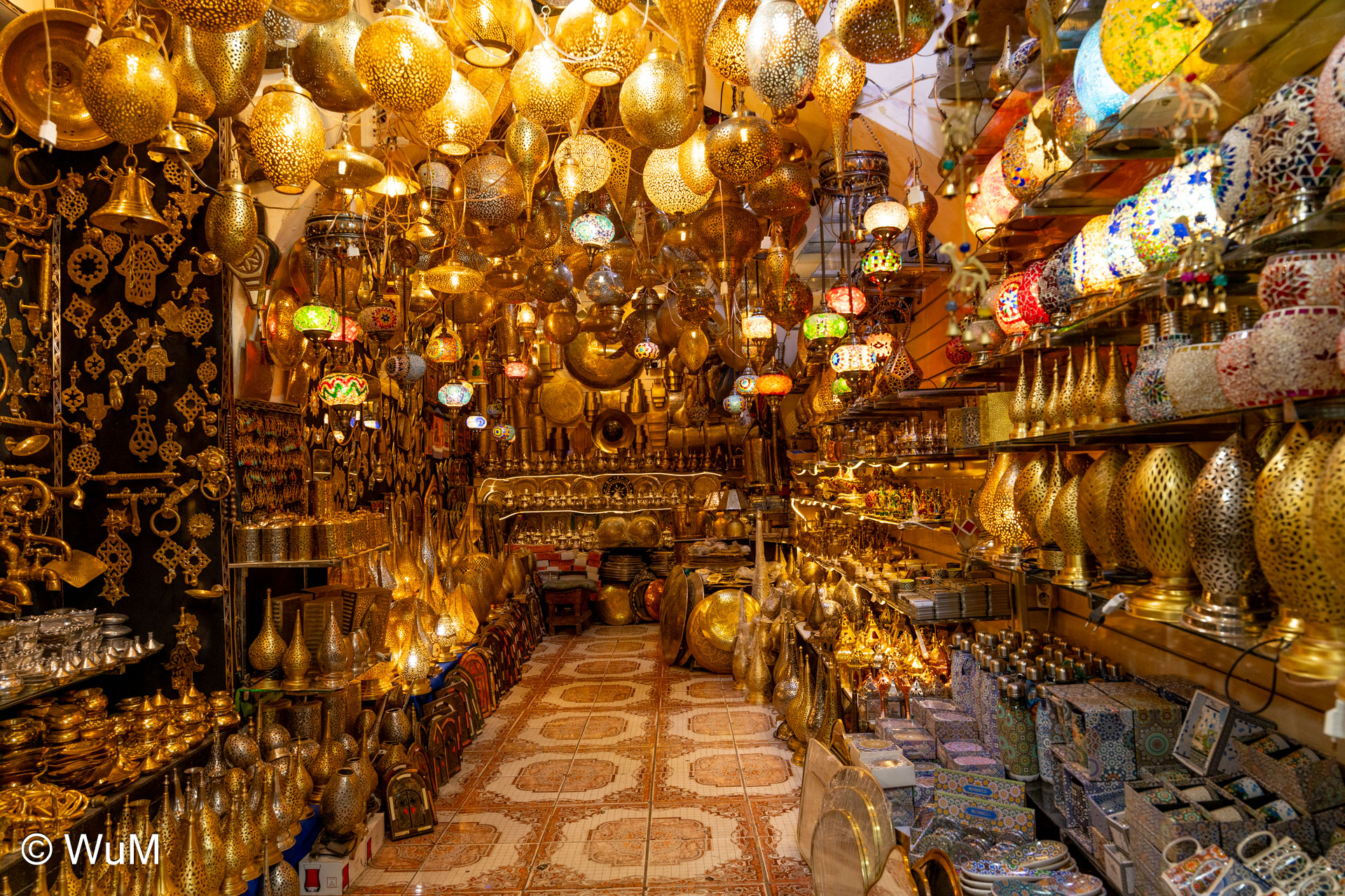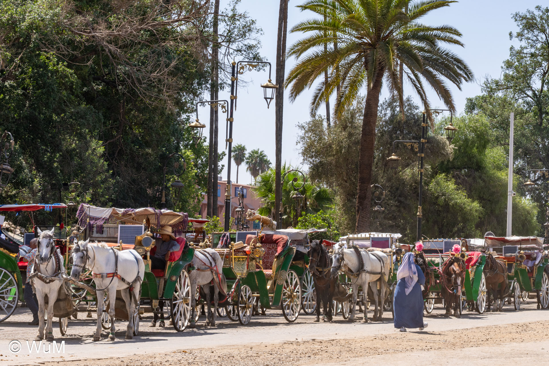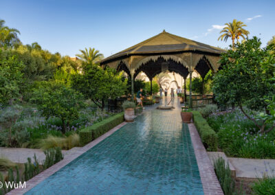 Am nächsten Tag wollen wir den Jardin Majorette besuchen. Vor dem Eingang stehen bereits Schlangen und wir müssten für den nächsten freien Slot mehrere Stunden warten. Wir verzichten auf den Besuch und gehen durch die Souks wieder zurück zum Jemaa el Fna. Dabei gehen wir keine einzige Gasse, die wir am Vortag gegangen sind. Die Souks von Marrakech sind die größten Marrokos.