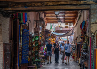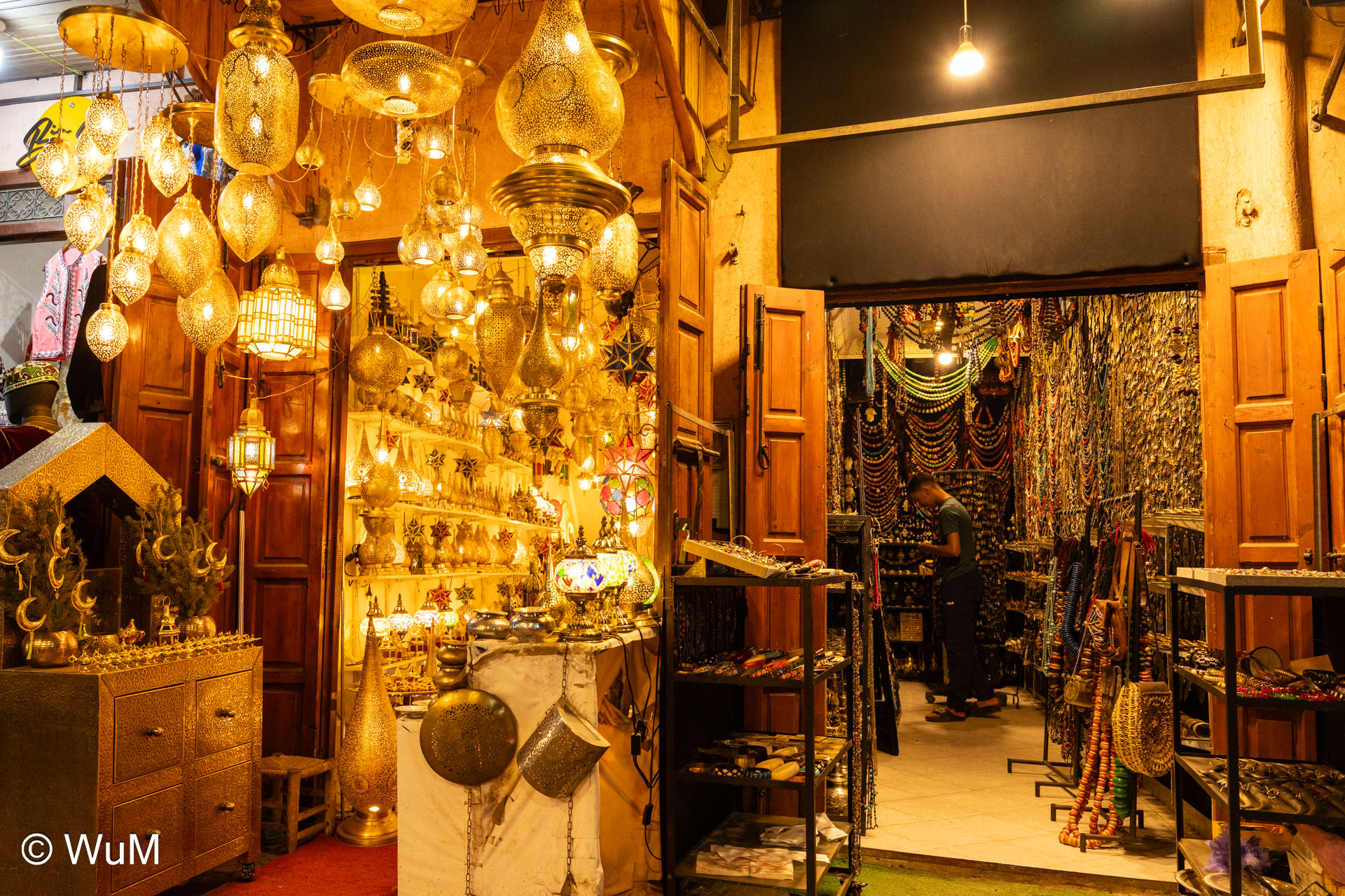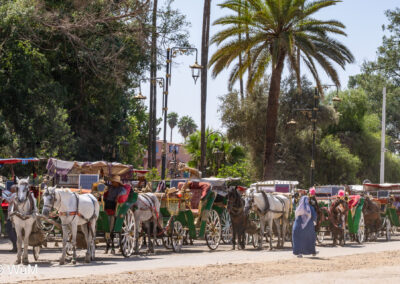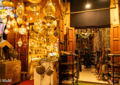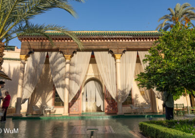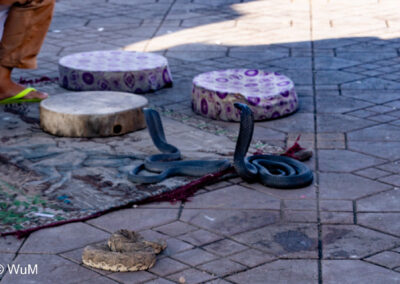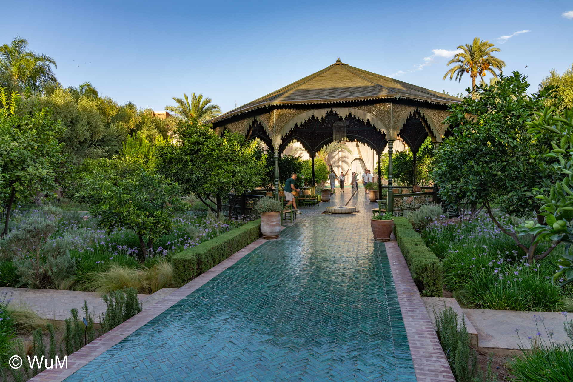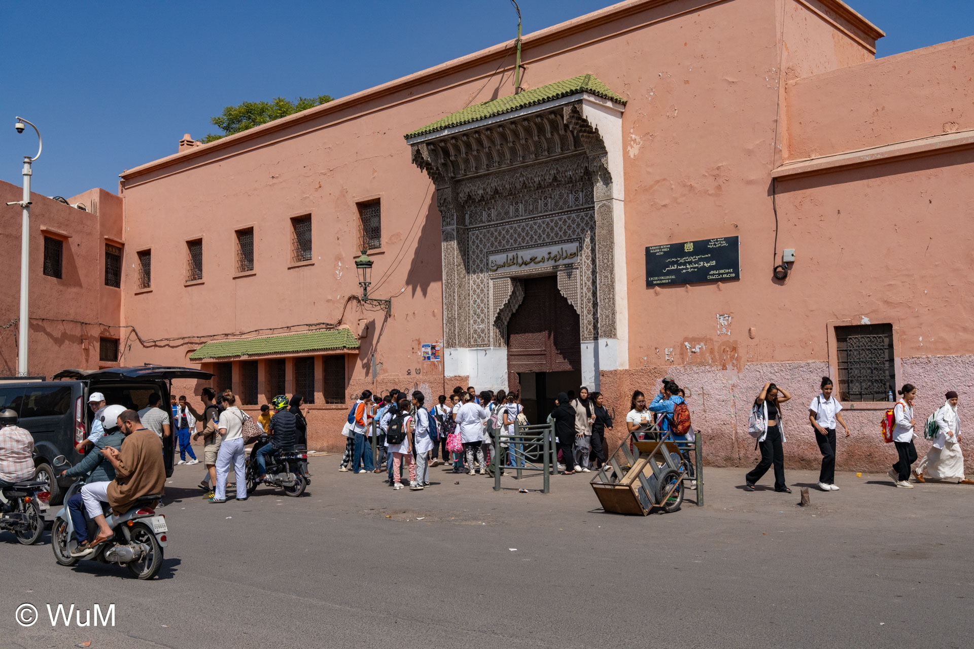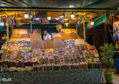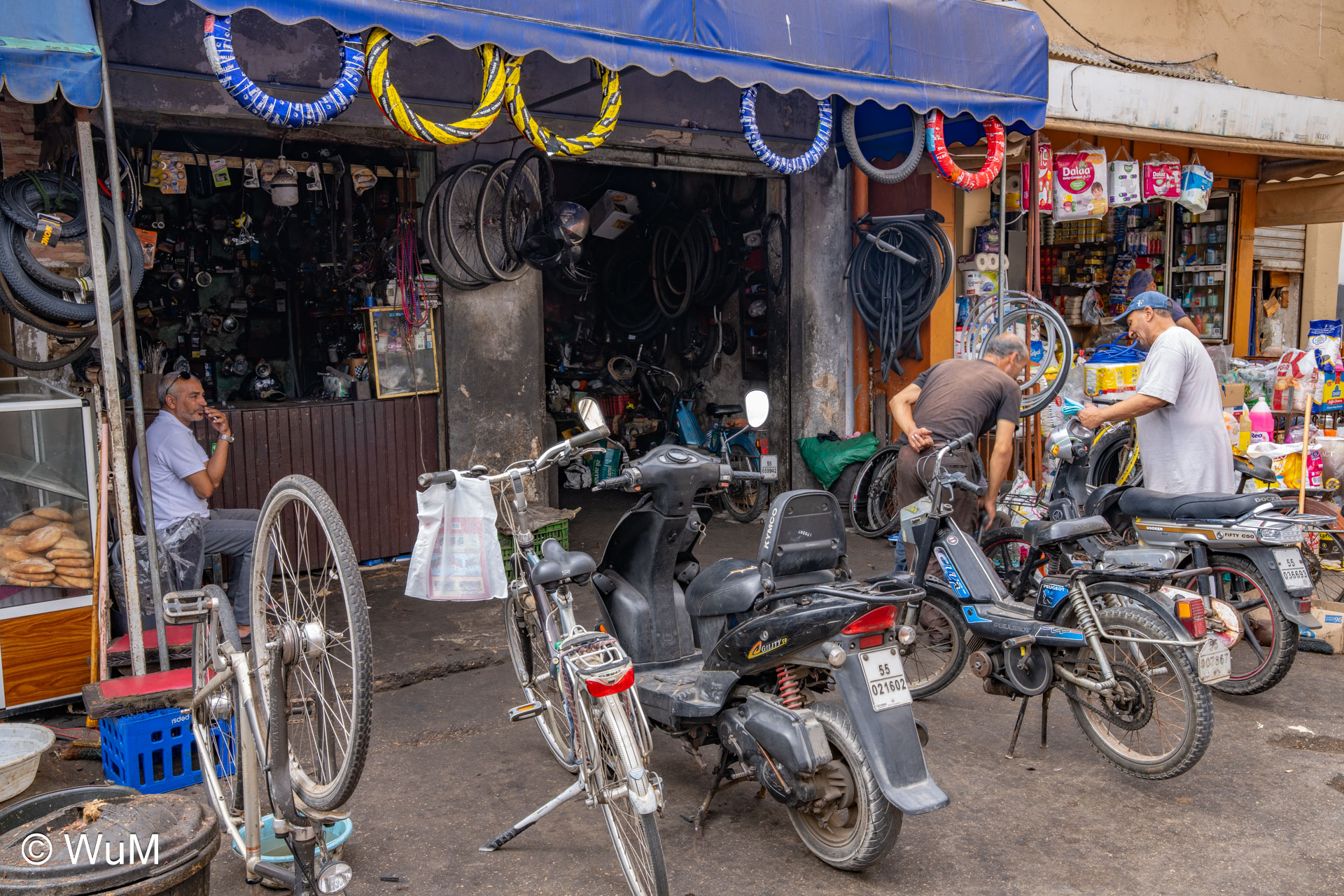 Am nächsten Tag wollen wir den Jardin Majorette besuchen. Vor dem Eingang stehen bereits Schlangen und wir müssten für den nächsten freien Slot mehrere Stunden warten. Wir verzichten auf den Besuch und gehen durch die Souks wieder zurück zum Jemaa el Fna. Dabei gehen wir keine einzige Gasse, die wir am Vortag gegangen sind. Die Souks von Marrakech sind die größten Marrokos.