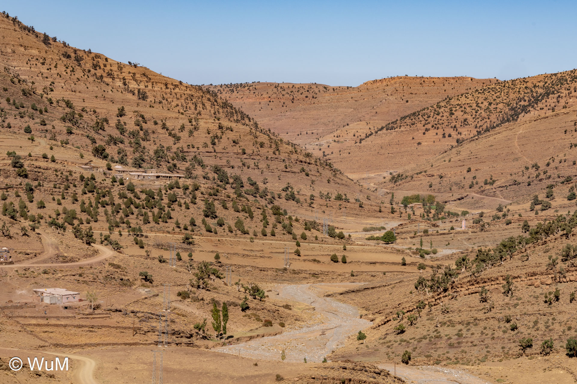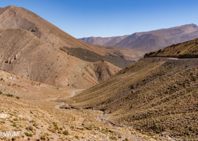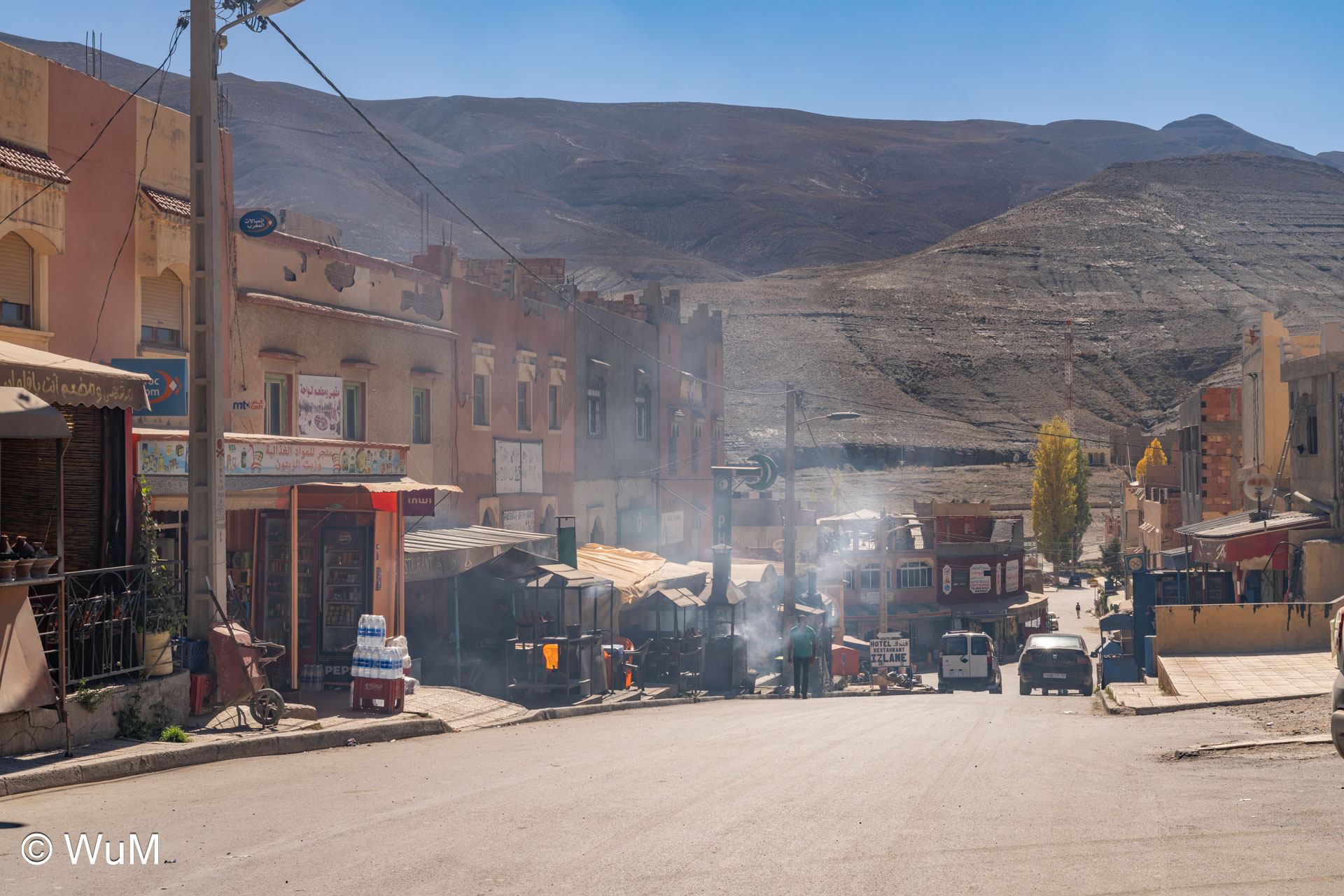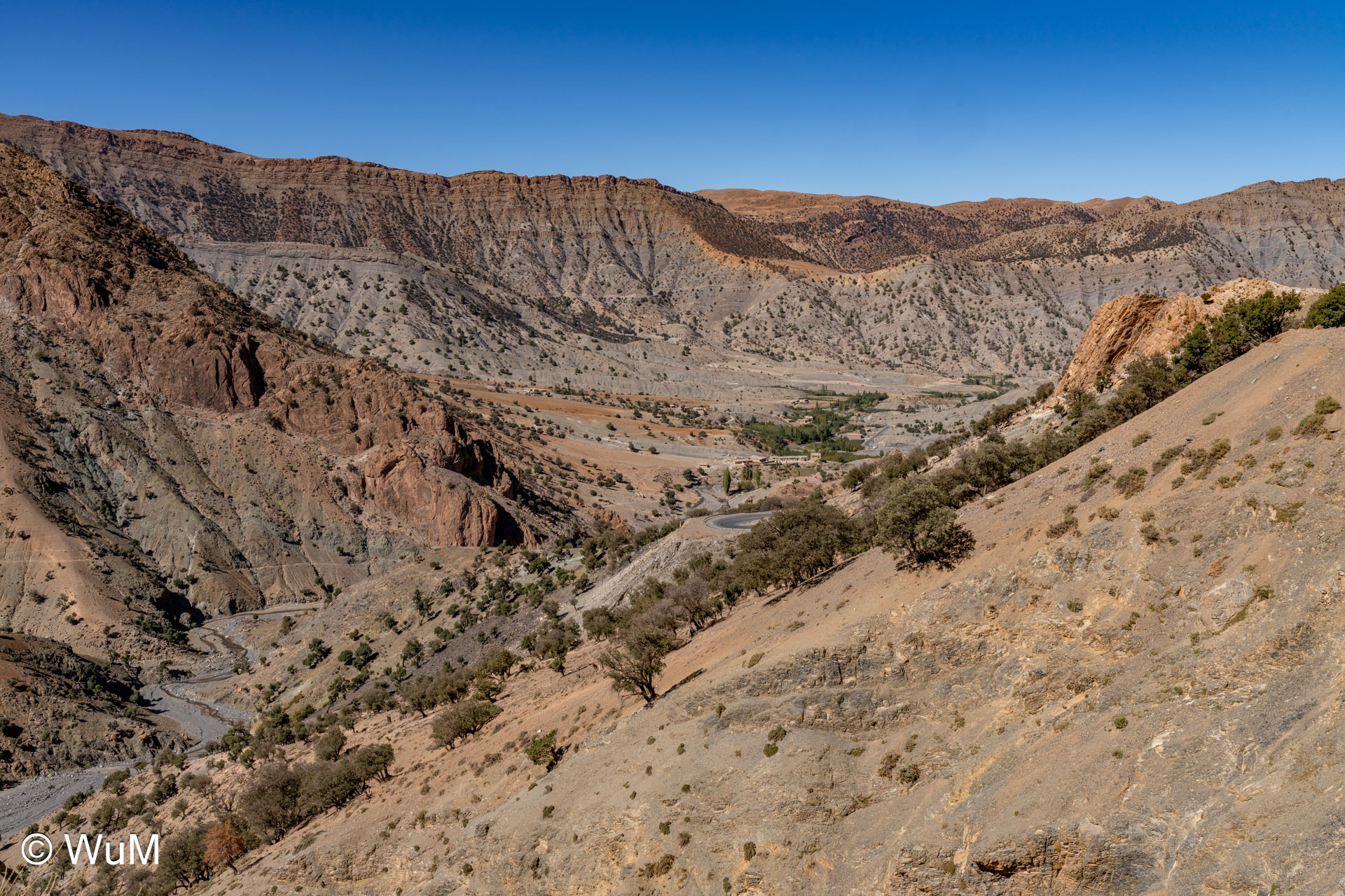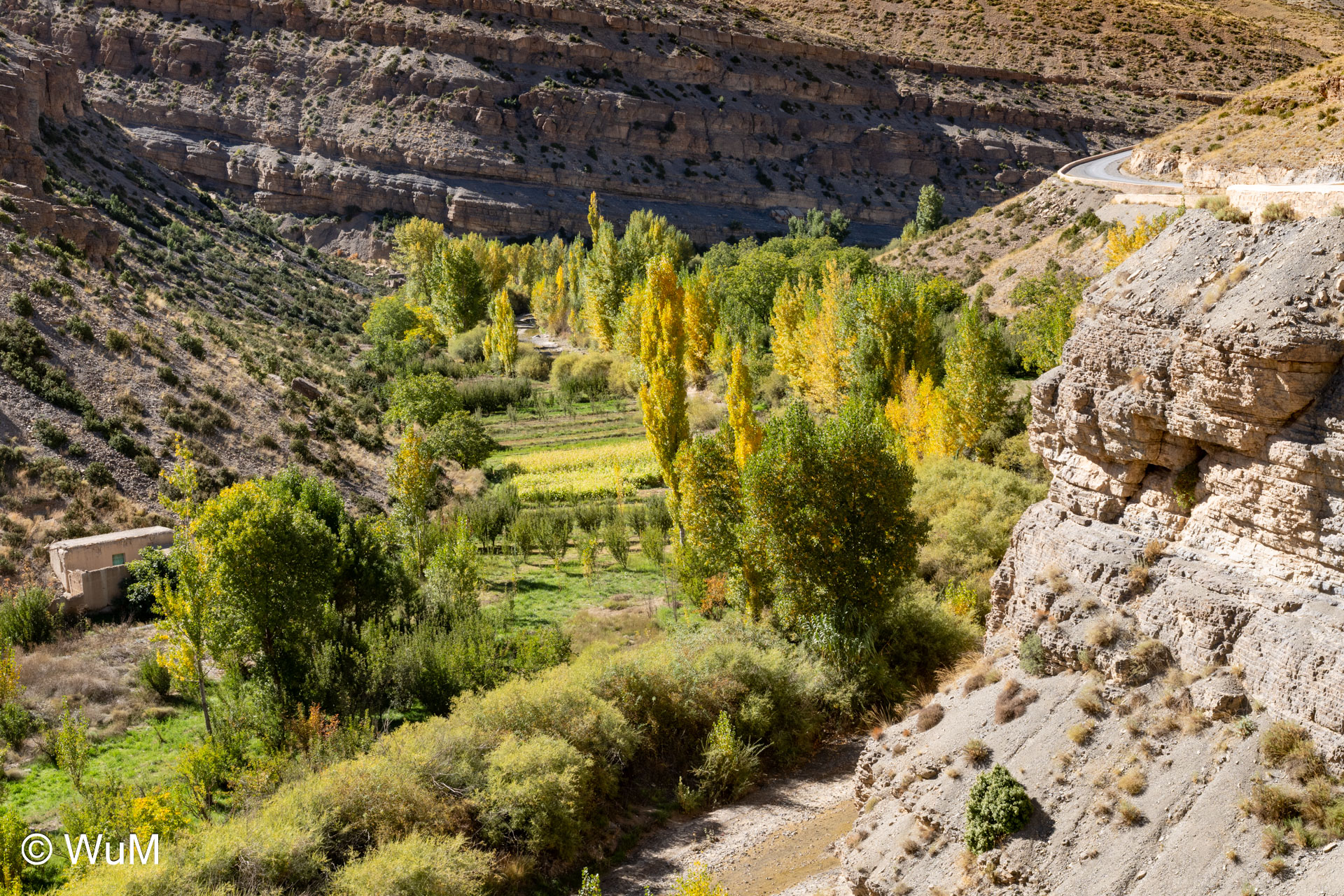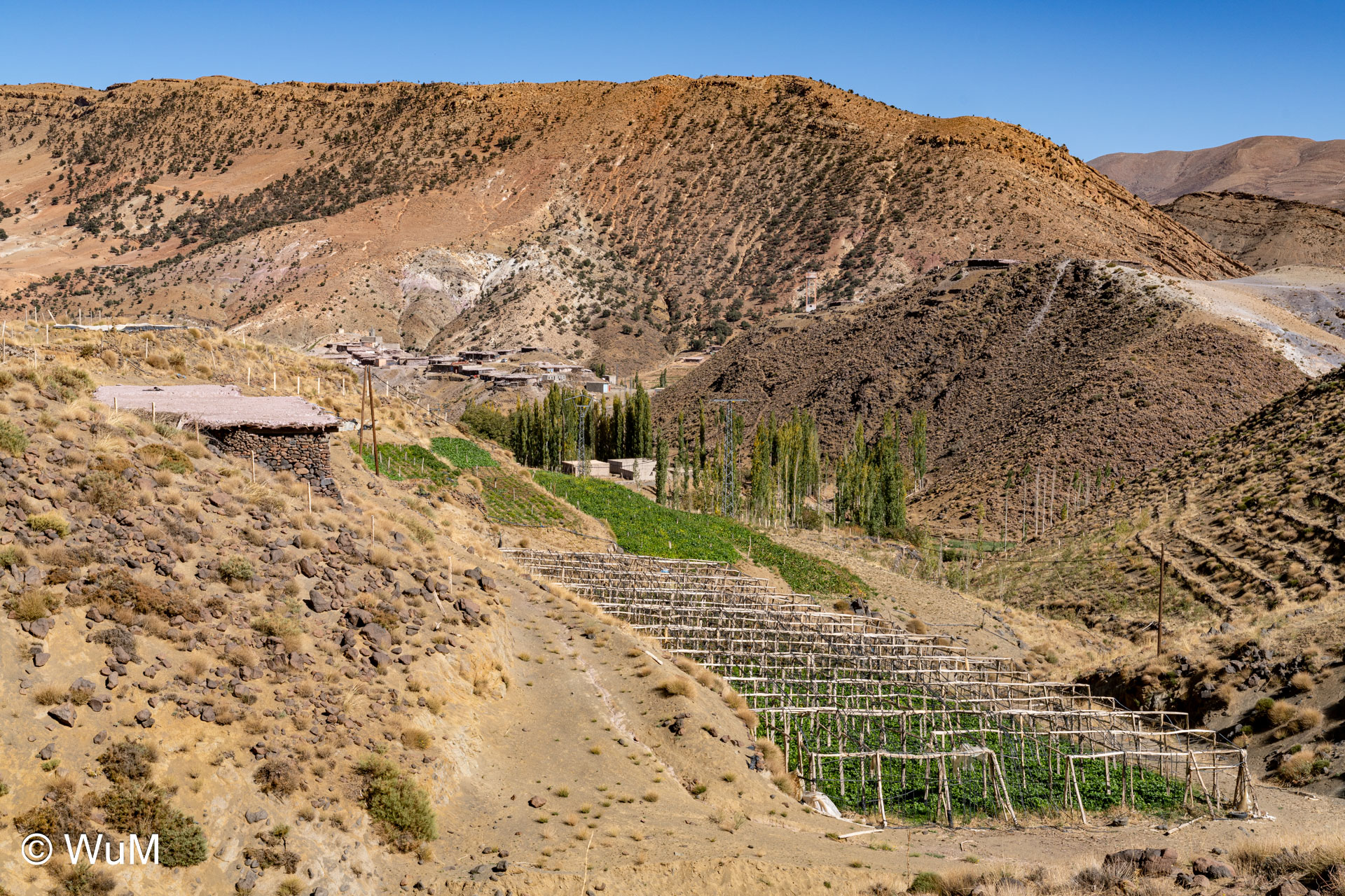 Vom Camping Jurassique geht es den Rest des Ziz-Tales hinaus bis nach Er-Rich. Wir fahren weiter Richtung Imilchil. Teilweise auf Piste oder schlechtem Asphalt. Es geht nur langsam weiter, die Gegend ist aber wunderschön. Wir schrauben uns hinauf bis auf über 2.500 m. Auch auf dieser Höhe gibt es – dort wo es Wasser gibt – noch Apfelplantagen, Olivenbäume, Mais und noch vieles anderes. Von Imilchil geht es weiter nach Ouaouizaght. Auch hier ist die Landschaft traumhaft, die Straße könnte besser sein… Eigentlich wollten wir hier den Tag beenden, aber es scheitert jedoch an einem geeignetem Lagerplatz. Wir fahren auf der nächsten Offroad-Route noch über eine Stunde, bis wir einen schönen Platz zum Übernachten finden.