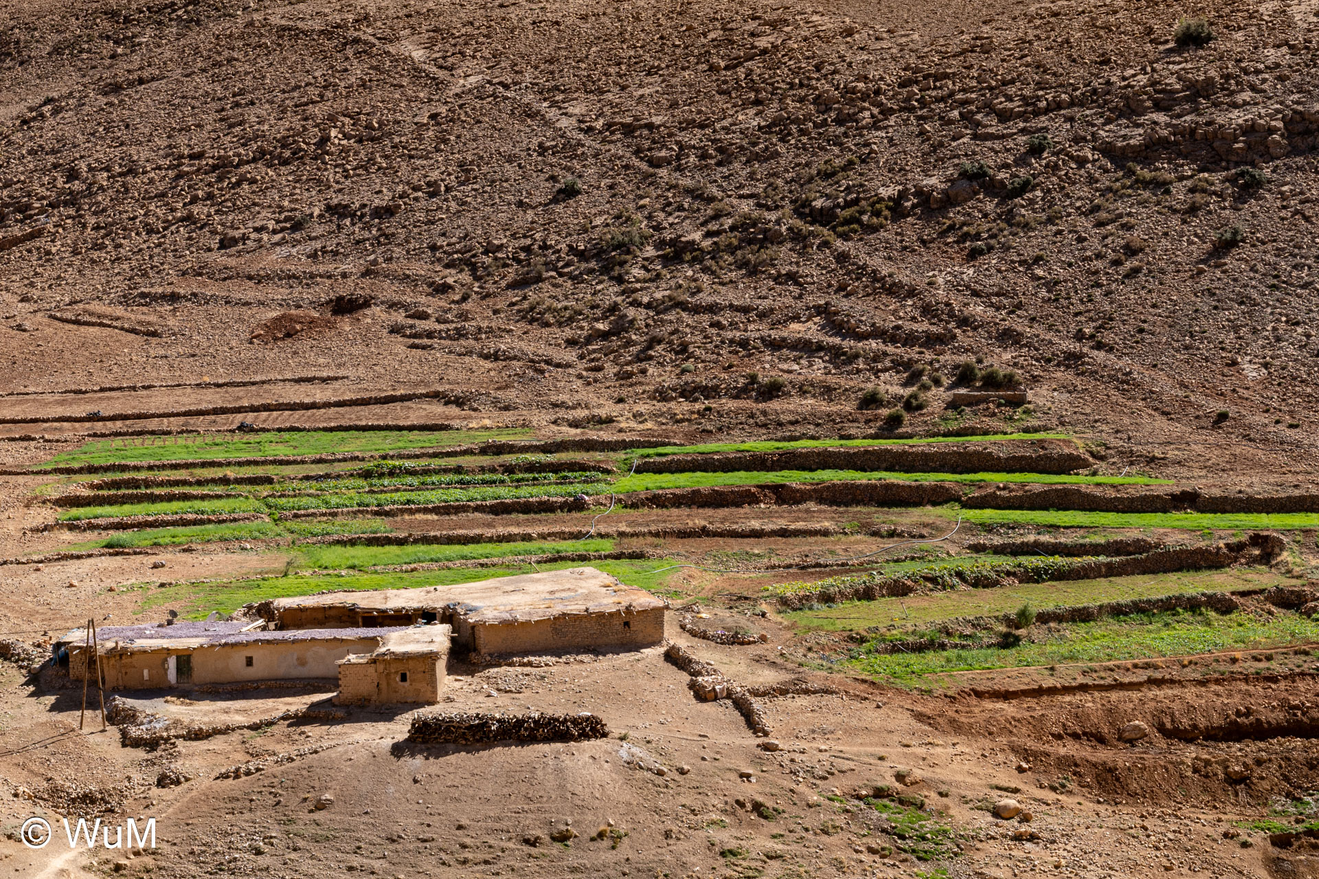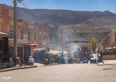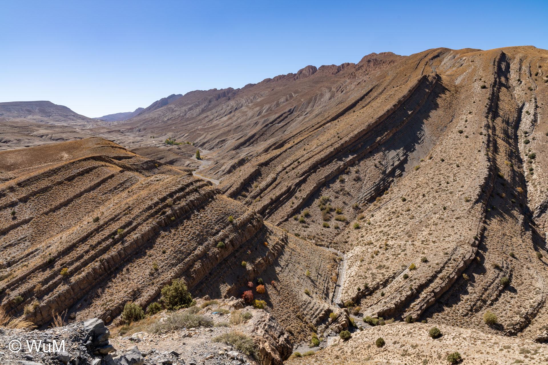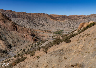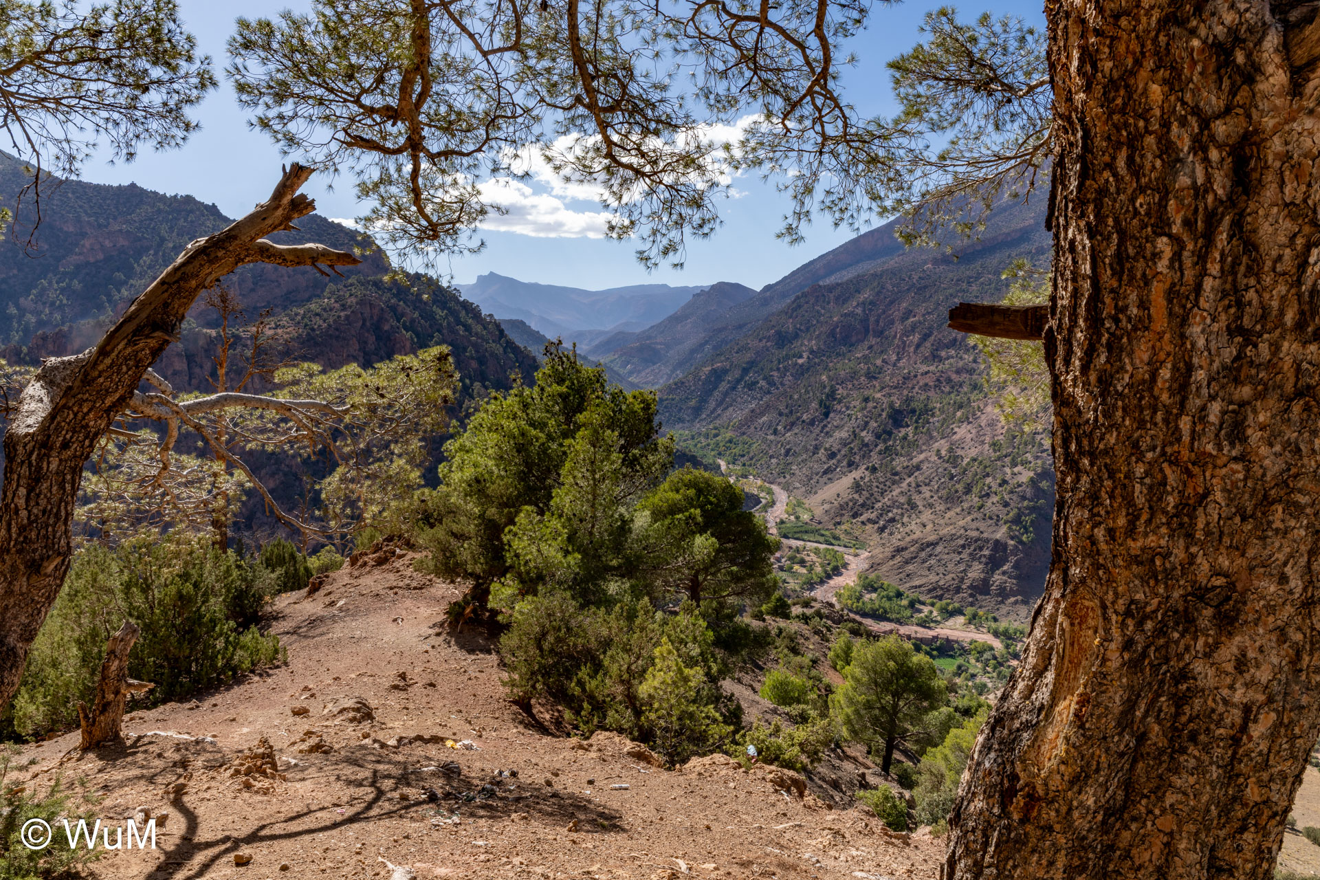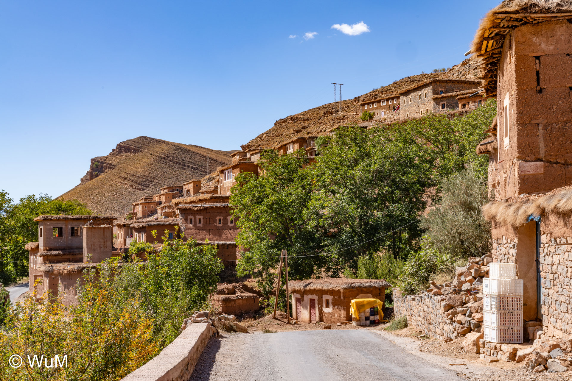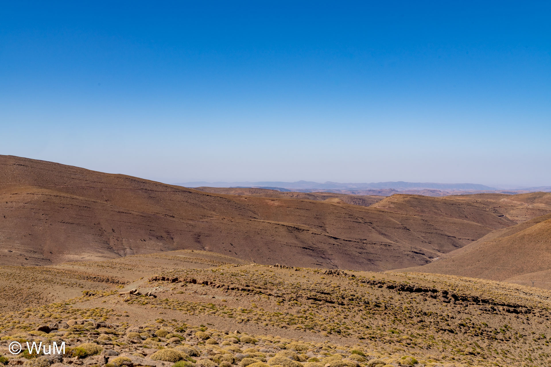 Vom Camping Jurassique geht es den Rest des Ziz-Tales hinaus bis nach Er-Rich. Wir fahren weiter Richtung Imilchil. Teilweise auf Piste oder schlechtem Asphalt. Es geht nur langsam weiter, die Gegend ist aber wunderschön. Wir schrauben uns hinauf bis auf über 2.500 m. Auch auf dieser Höhe gibt es – dort wo es Wasser gibt – noch Apfelplantagen, Olivenbäume, Mais und noch vieles anderes. Von Imilchil geht es weiter nach Ouaouizaght. Auch hier ist die Landschaft traumhaft, die Straße könnte besser sein… Eigentlich wollten wir hier den Tag beenden, aber es scheitert jedoch an einem geeignetem Lagerplatz. Wir fahren auf der nächsten Offroad-Route noch über eine Stunde, bis wir einen schönen Platz zum Übernachten finden.