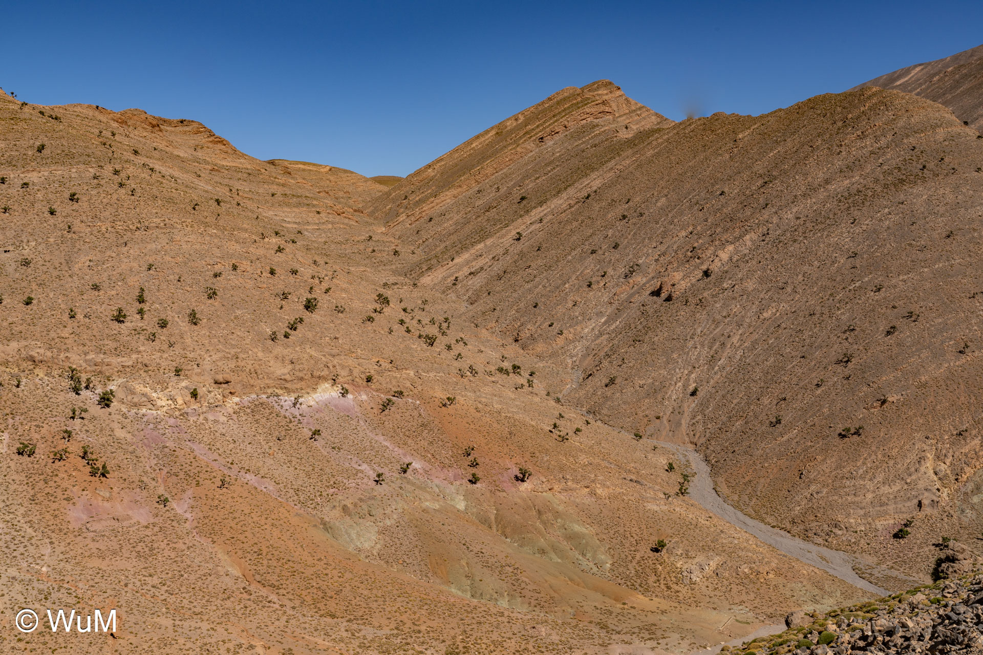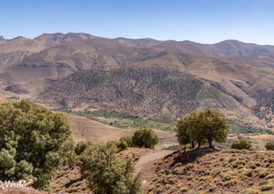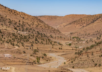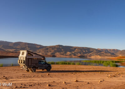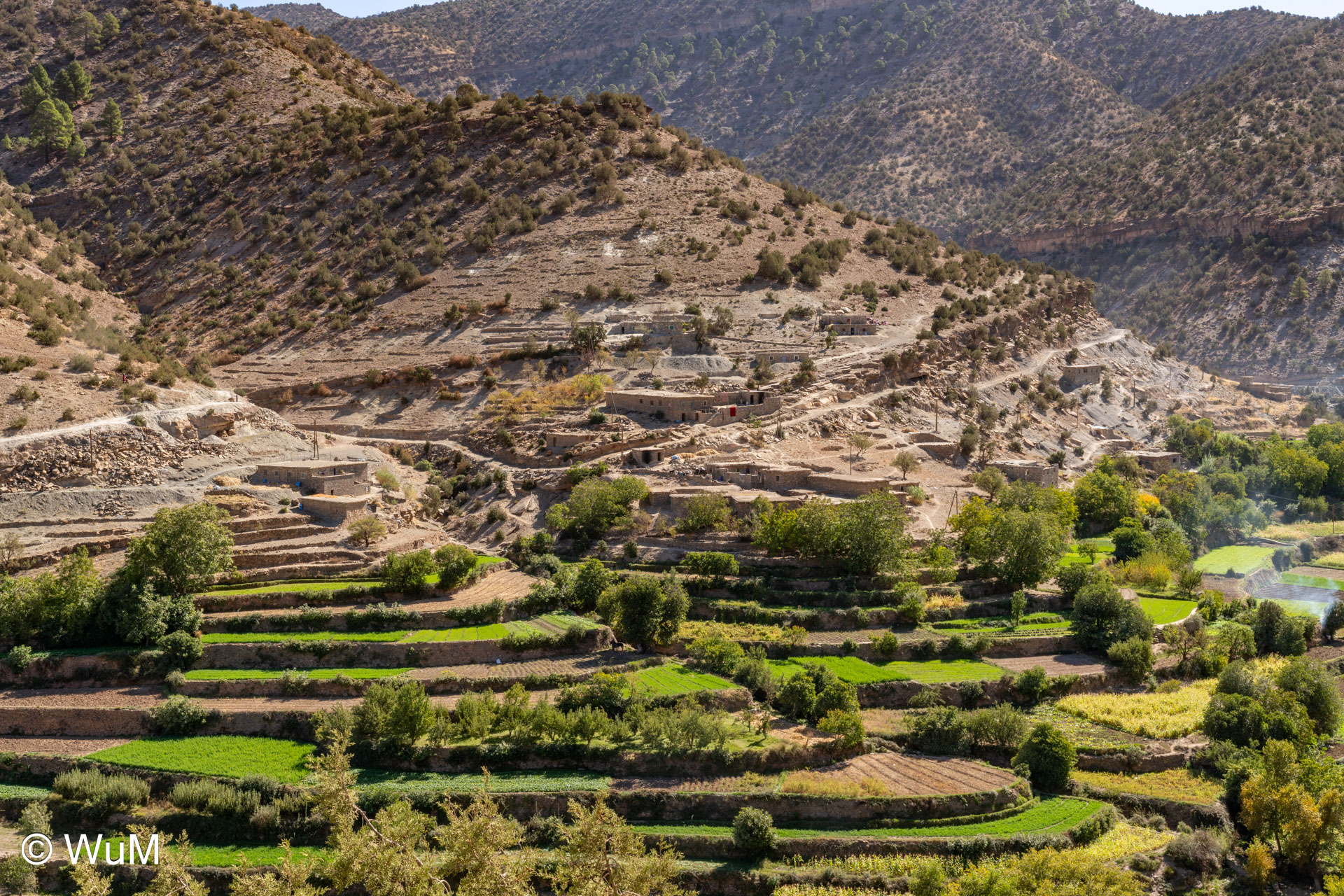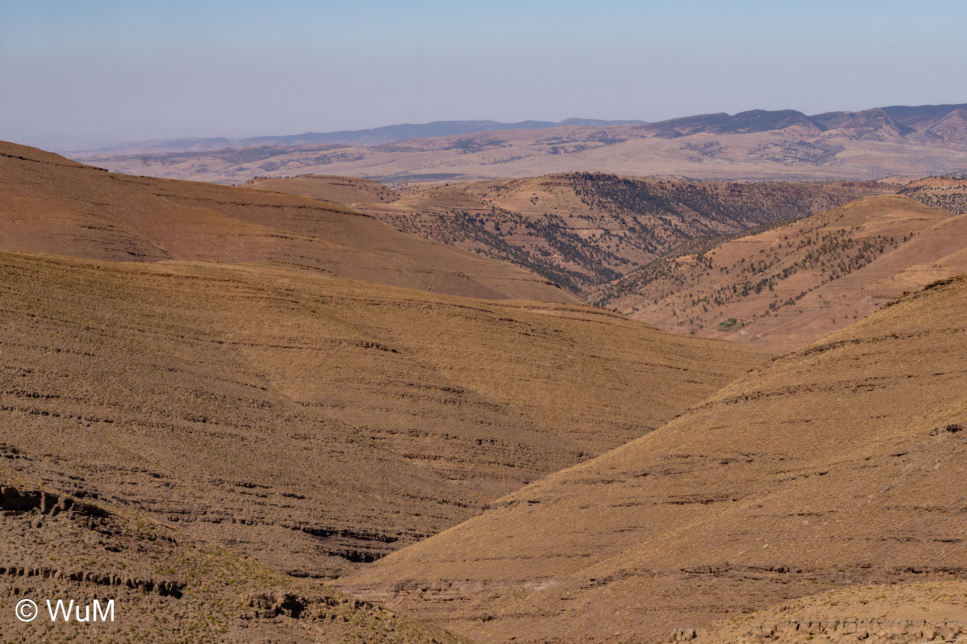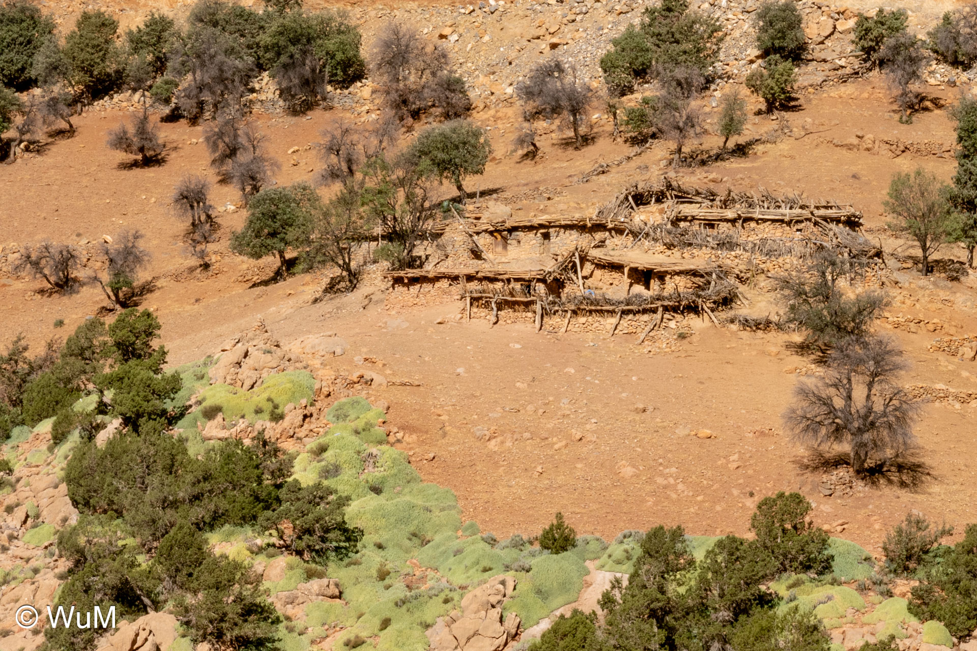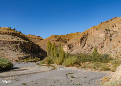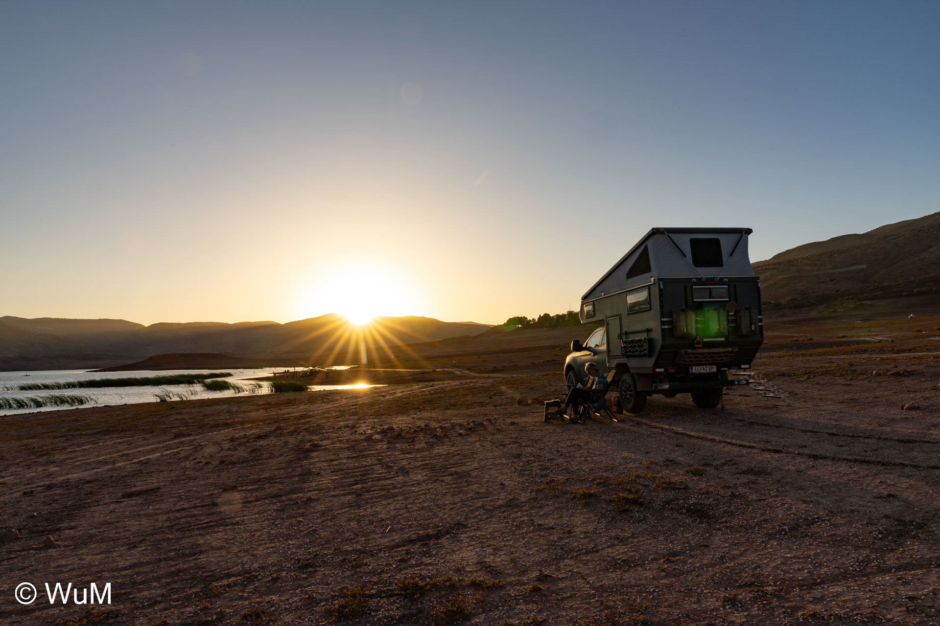 Vom Camping Jurassique geht es den Rest des Ziz-Tales hinaus bis nach Er-Rich. Wir fahren weiter Richtung Imilchil. Teilweise auf Piste oder schlechtem Asphalt. Es geht nur langsam weiter, die Gegend ist aber wunderschön. Wir schrauben uns hinauf bis auf über 2.500 m. Auch auf dieser Höhe gibt es – dort wo es Wasser gibt – noch Apfelplantagen, Olivenbäume, Mais und noch vieles anderes. Von Imilchil geht es weiter nach Ouaouizaght. Auch hier ist die Landschaft traumhaft, die Straße könnte besser sein… Eigentlich wollten wir hier den Tag beenden, aber es scheitert jedoch an einem geeignetem Lagerplatz. Wir fahren auf der nächsten Offroad-Route noch über eine Stunde, bis wir einen schönen Platz zum Übernachten finden.