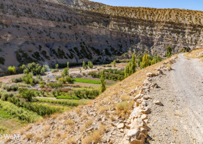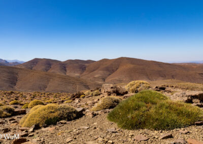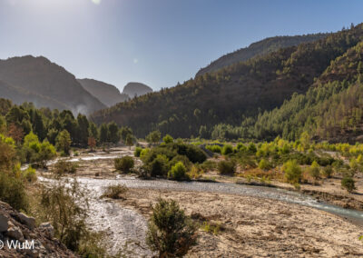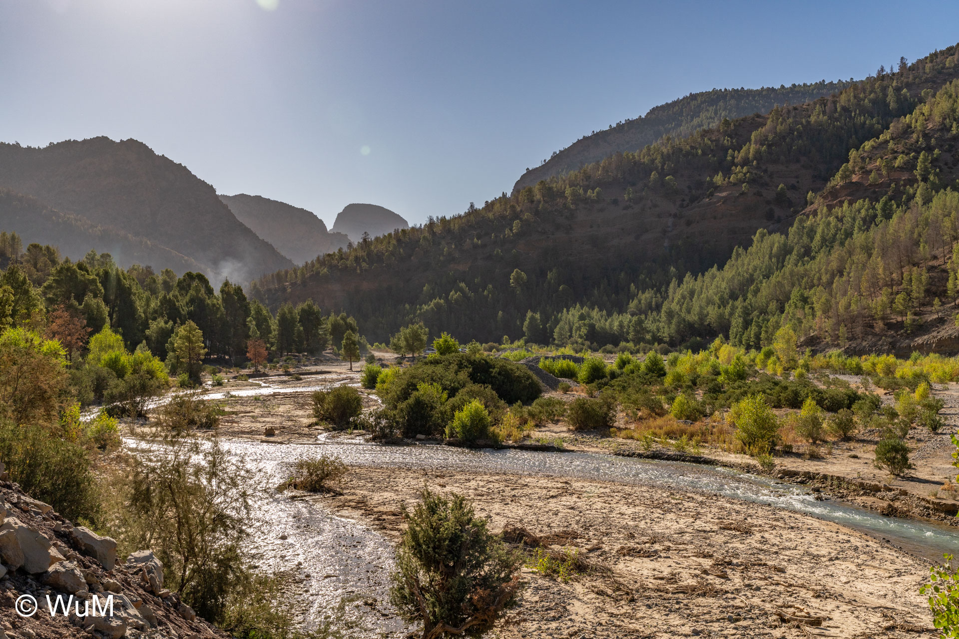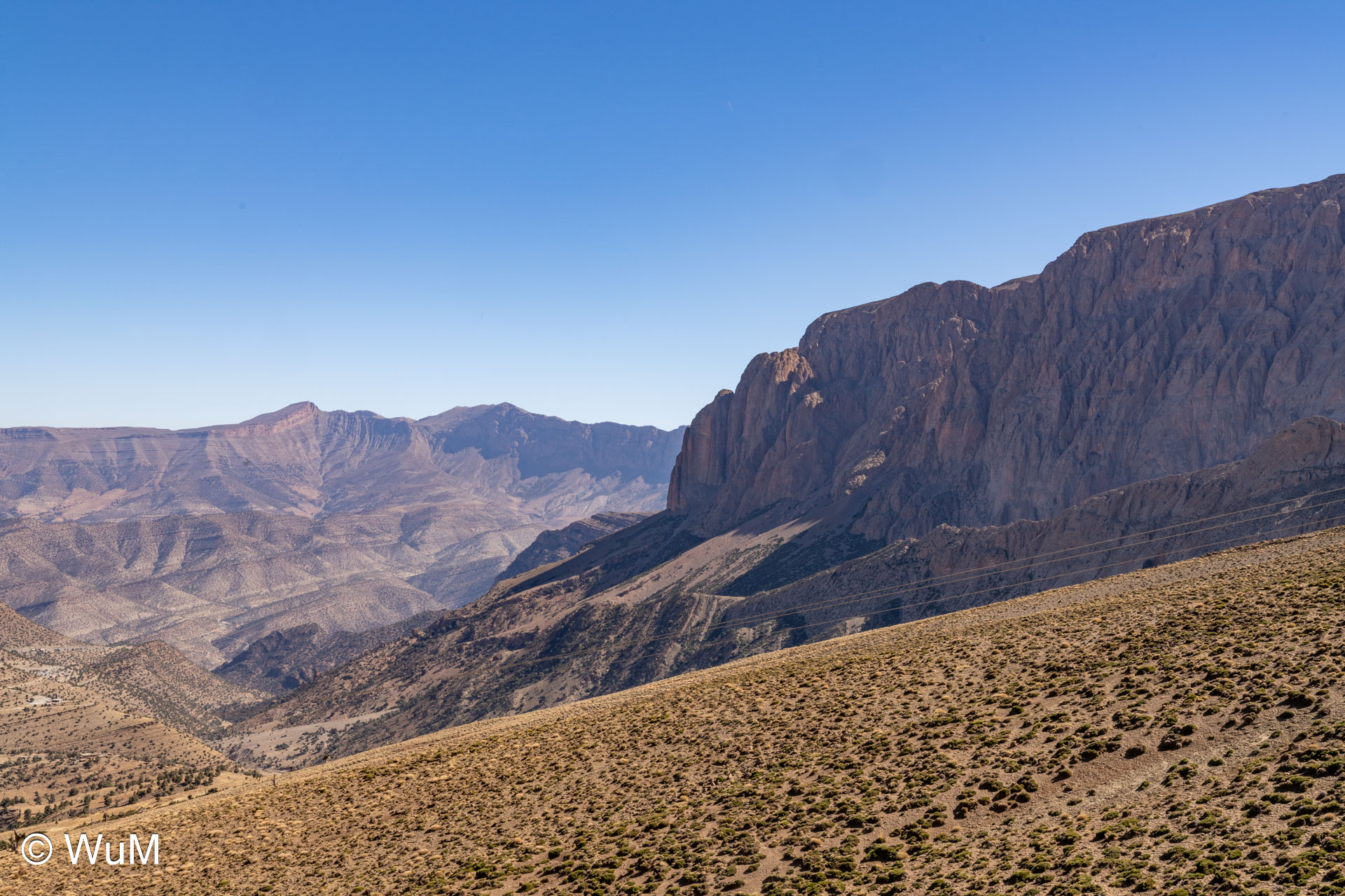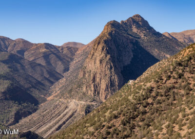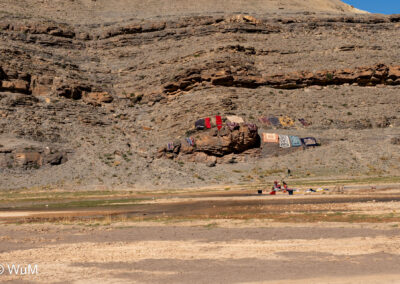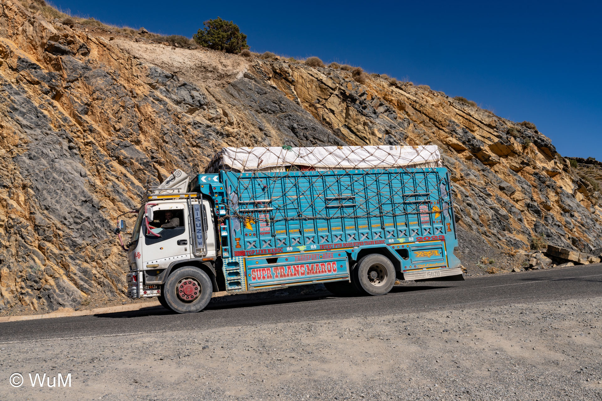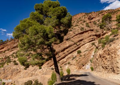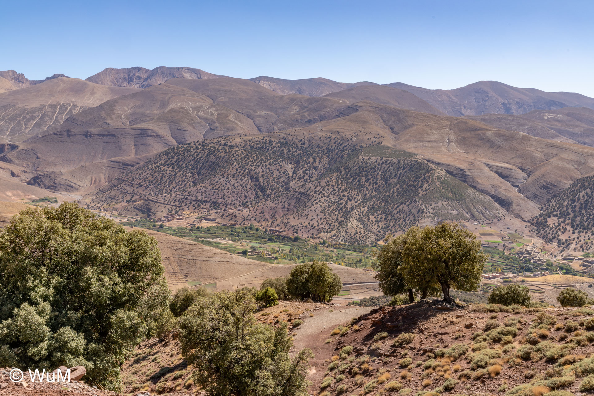Vom Camping Jurassique geht es den Rest des Ziz-Tales hinaus bis nach Er-Rich. Wir fahren weiter Richtung Imilchil. Teilweise auf Piste oder schlechtem Asphalt. Es geht nur langsam weiter, die Gegend ist aber wunderschön. Wir schrauben uns hinauf bis auf über 2.500 m. Auch auf dieser Höhe gibt es – dort wo es Wasser gibt – noch Apfelplantagen, Olivenbäume, Mais und noch vieles anderes. Von Imilchil geht es weiter nach Ouaouizaght. Auch hier ist die Landschaft traumhaft, die Straße könnte besser sein… Eigentlich wollten wir hier den Tag beenden, aber es scheitert jedoch an einem geeignetem Lagerplatz. Wir fahren auf der nächsten Offroad-Route noch über eine Stunde, bis wir einen schönen Platz zum Übernachten finden.