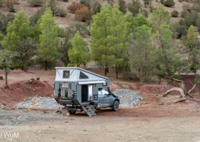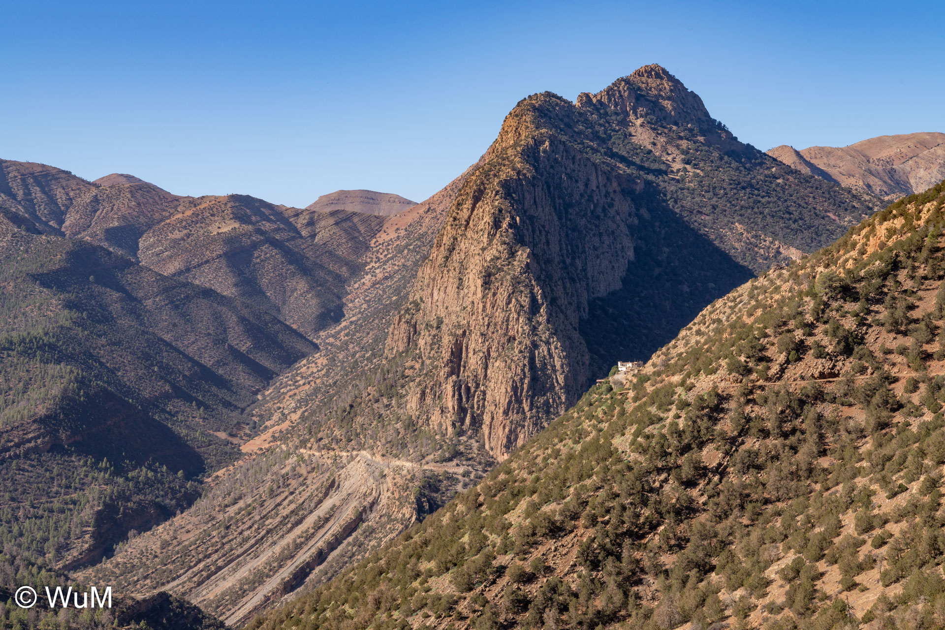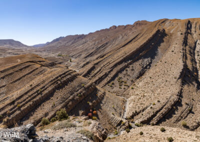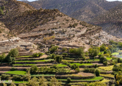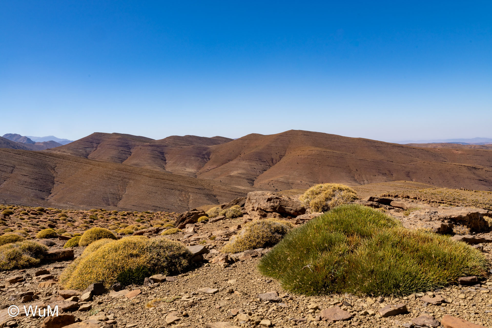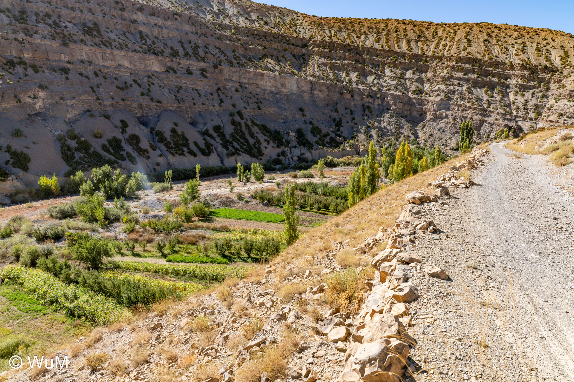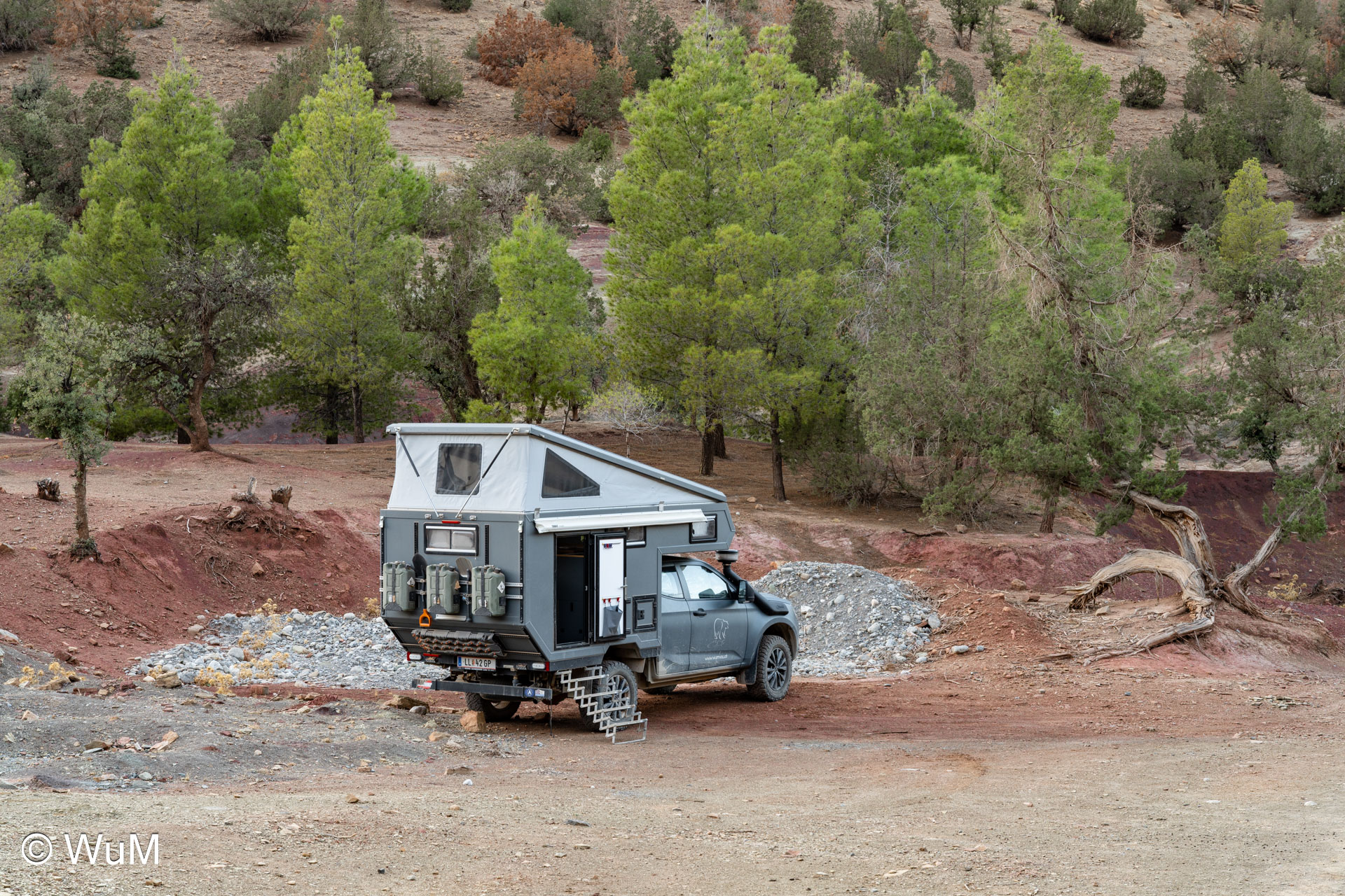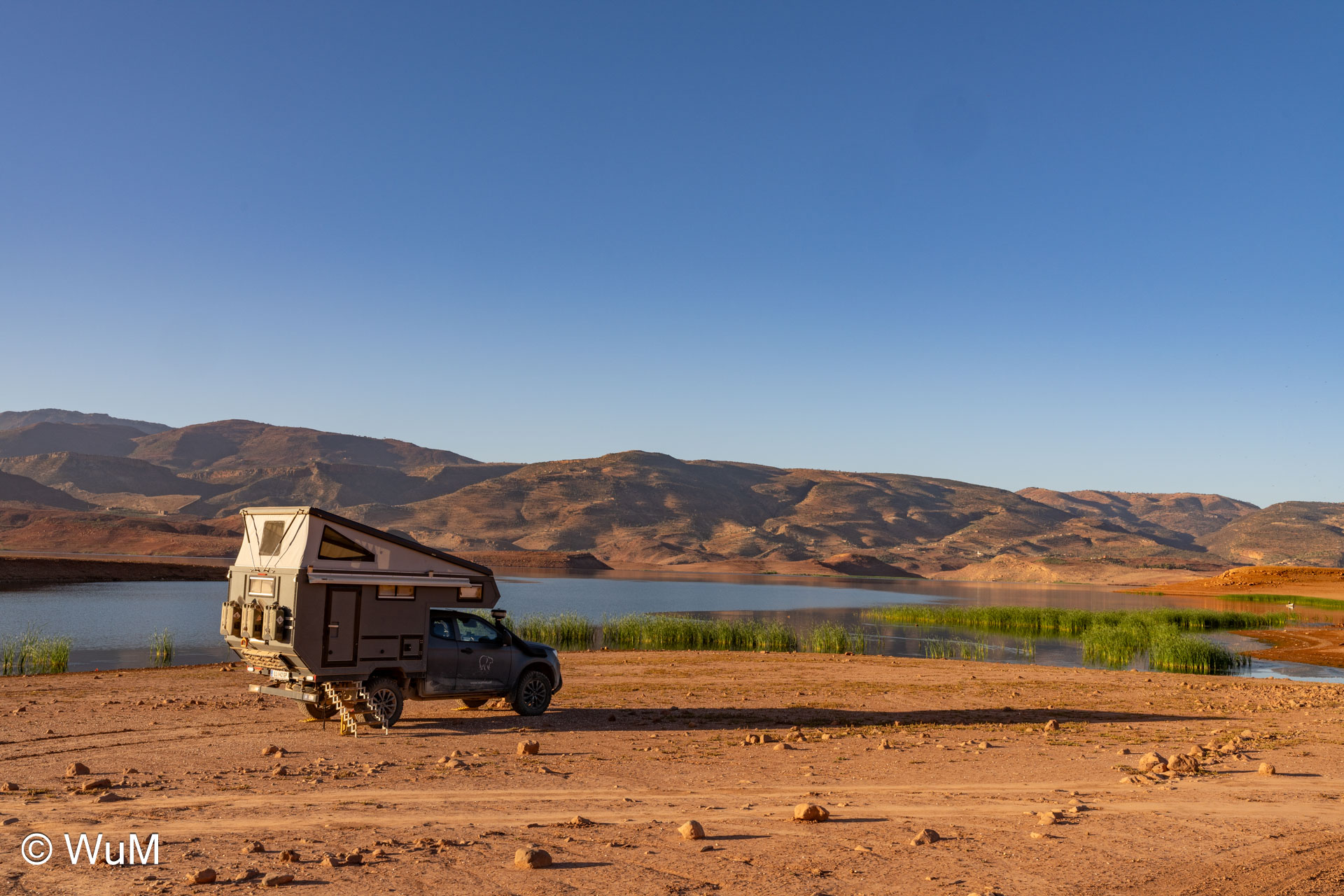 Vom Camping Jurassique geht es den Rest des Ziz-Tales hinaus bis nach Er-Rich. Wir fahren weiter Richtung Imilchil. Teilweise auf Piste oder schlechtem Asphalt. Es geht nur langsam weiter, die Gegend ist aber wunderschön. Wir schrauben uns hinauf bis auf über 2.500 m. Auch auf dieser Höhe gibt es – dort wo es Wasser gibt – noch Apfelplantagen, Olivenbäume, Mais und noch vieles anderes. Von Imilchil geht es weiter nach Ouaouizaght. Auch hier ist die Landschaft traumhaft, die Straße könnte besser sein… Eigentlich wollten wir hier den Tag beenden, aber es scheitert jedoch an einem geeignetem Lagerplatz. Wir fahren auf der nächsten Offroad-Route noch über eine Stunde, bis wir einen schönen Platz zum Übernachten finden.