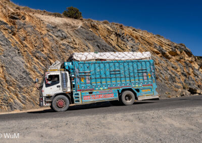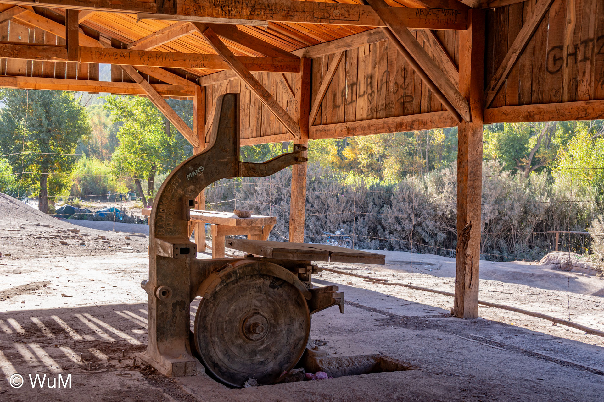 Ein kleines Stück geht es noch auf Asphalt weiter, dann beginnt eine gute Piste. Wir kommen an einem alten Sägewerk vorbei. Es gibt ein Loch im Zaun, und wir können in das Werksgelände hineinklettern. Danach geht es aus dem schönen Tal wieder ins Gebirge. Heute erreichen wir eine Höhe von 2.743 m. Auch auf dieser Höhe gibt es immer wieder Gehöfte und Siedlungen. Die Leute hier müssen schon sehr bescheiden sein. Die Lebensbedingungen sind sehr hart. Wenn wir erblickt werden, laufen die Kinder schon von weit weg Richtung Straße, um uns abzufangen. Einige winken freundlich, andere betteln. Die Kinder tun uns leid, aber man soll sie nicht durch Geschenke zum Betteln animieren. Diese Vorgangsweise führt dazu, dass, wenn sie nichts bekommen, sie dem Auto Steine nachwerfen. Wir wurden zum Glück nie getroffen, bremsen reicht normalerweise und die Kinder verschwinden wie der Blitz. Auch heute haben wir wieder das Problem, einen geeigneten Lagerplatz in dieser schönen Gegend zu finden. Im Gebirge kann man fast nicht von der Straße und wenn, ist es die Zufahrt zu einem Gehöft. Die Täler sind durchgehend besiedelt und landwirtschaftlich genutzt. Erschwerend kommt dazu, dass die letzten 50 km der Piste eine Großbaustelle sind und die Baumaschinen den Weg versperren. Wir müssen mehrmals warten, bis die Straße von den großen Steinen freigeschaufelt wird, bis wir weiterfahren können. Erst um 18 Uhr finden wir an einem Stausee einen schönen Platz. In der Nähe picknicken einige Einheimische. Zuerst werden wir mit Kuchen und Tee versorgt. Dann bringen uns andere noch Fleischspieße vorbei. Alles hat sehr lecker geschmeckt. Gastfreundschaft hat hier einen hohen Stellenwert.