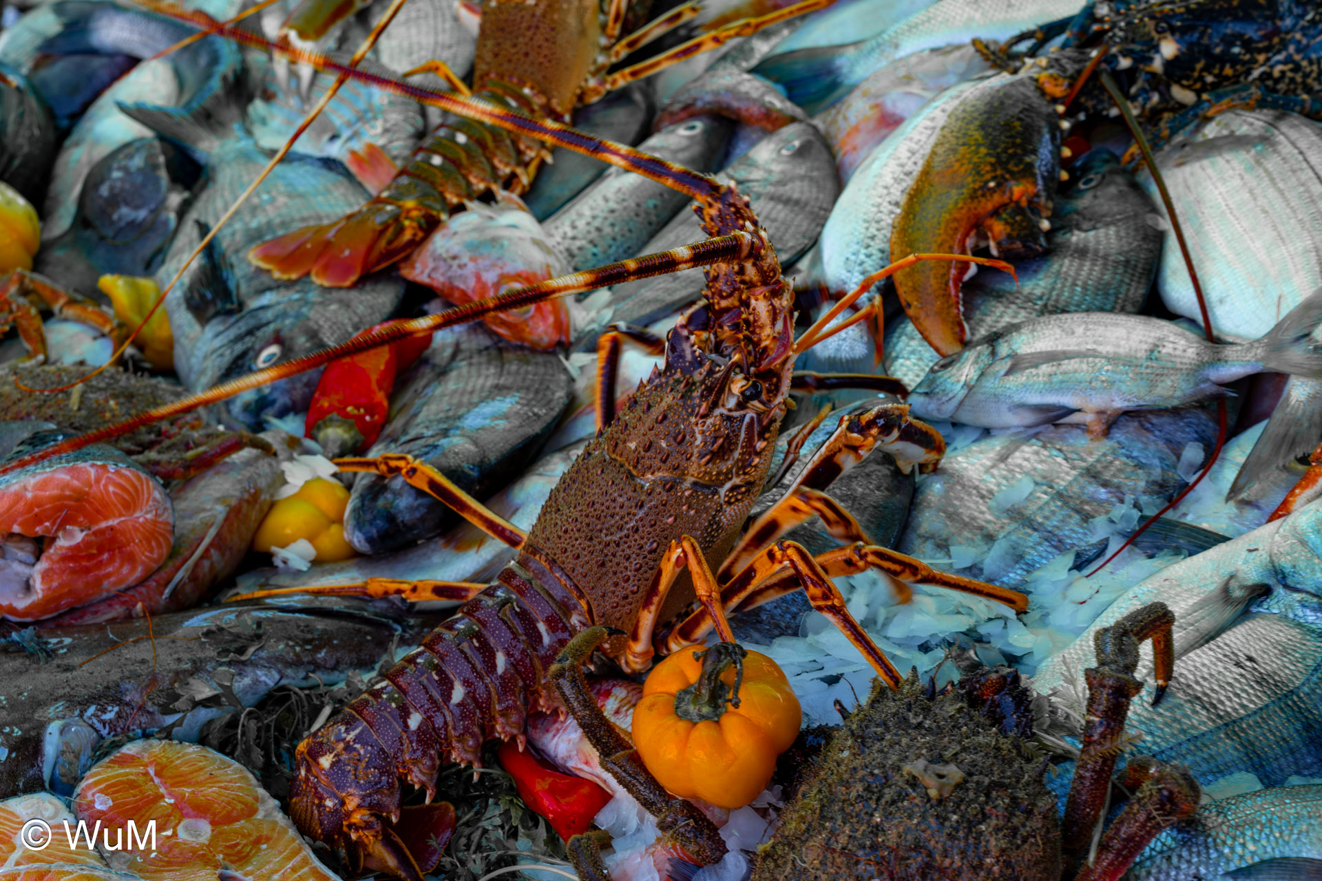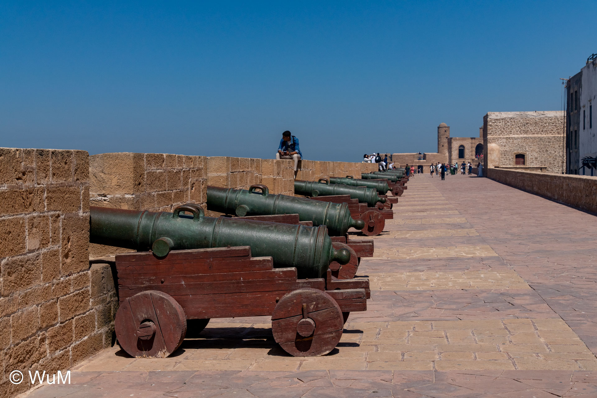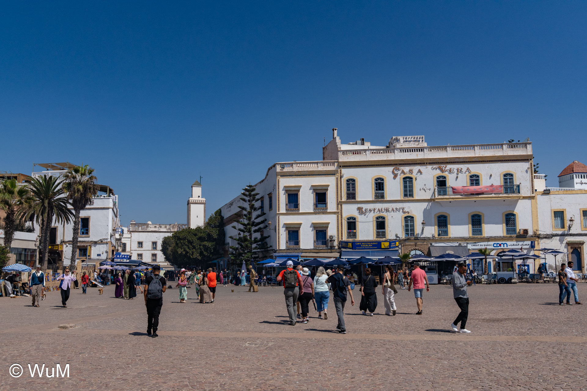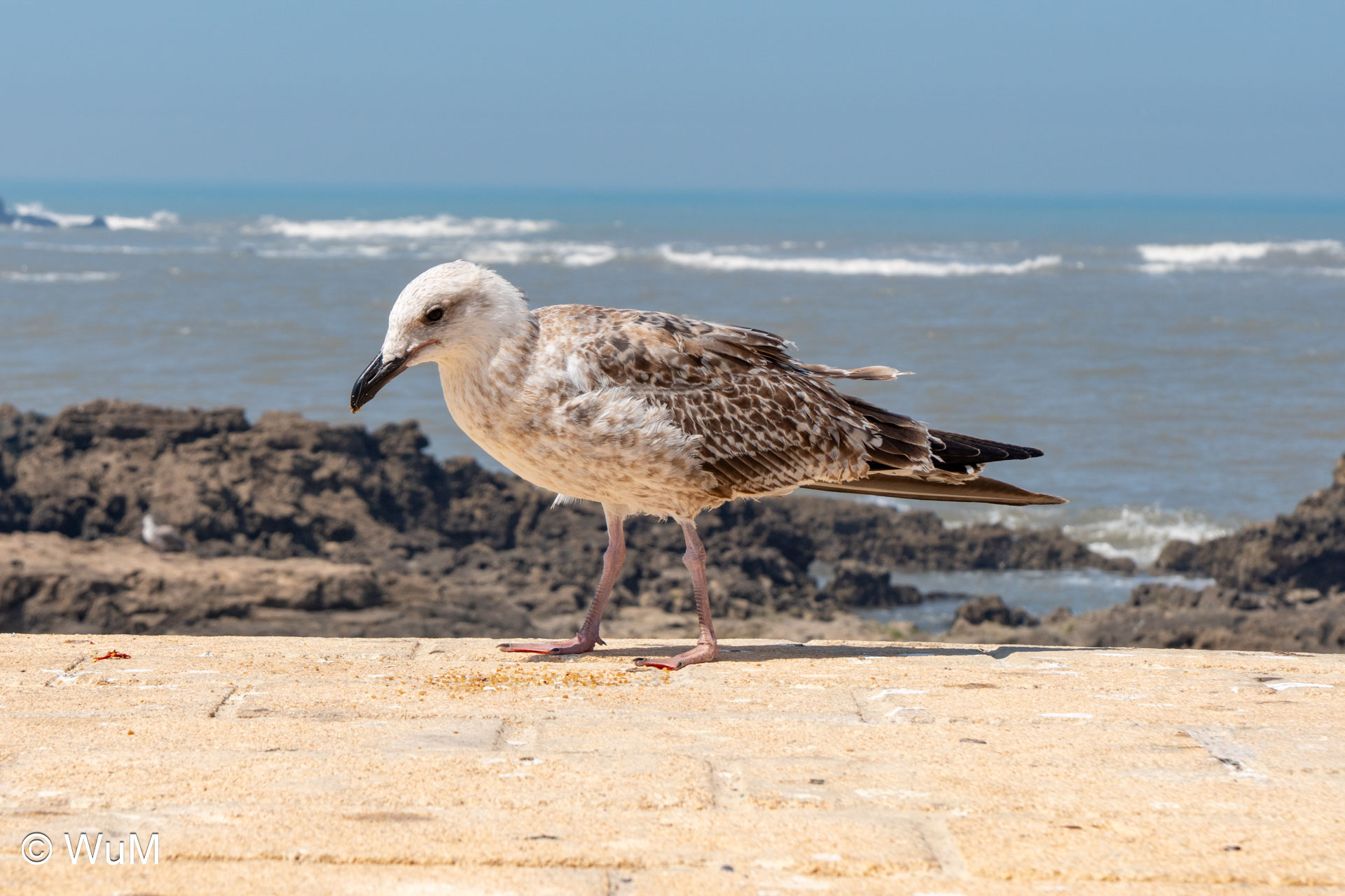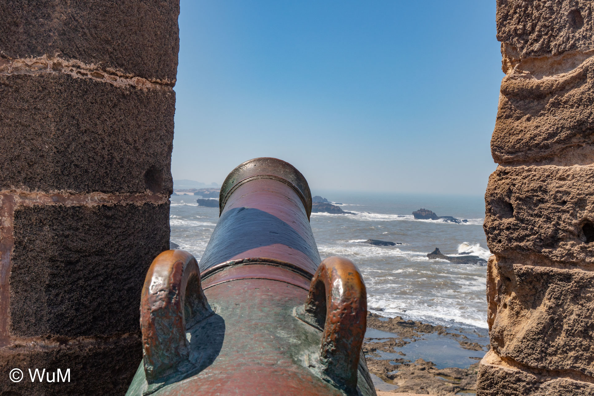 Die Fahrt von Marrakech Richtung Küste ist anfangs etwas mühselig. Viele Orte und immer wieder LKWs verhindern ein flottes Weiterkommen. Die Orte sind typisch marokkanisch mit den kleinen Läden und Werkstätten und dem üblichen Durcheinander. Nach drei Stunden Fahrt für 187 km kommen wir in Essaouira an. Nachdem wir einen Parkplatz gefunden haben, gehen wir durch die wunderschöne Altstadt mit den weißen Häusern und blauen Fensterläden Richtung Hafen. Das Angebot in den Läden hat sich bereits ein wenig geändert – wir sind weiter im Süden Marokkos. Von der von den Portugiesen errichteten Küstenbefestigung hat man einen schönen Ausblick auf die raue Küste. Entlang der Stadtmauer wandern wir zum Fischerhafen. Hier herrscht geschäftiges Treiben. Die Fischerboote werden entladen und an den Ständen wird der Fisch auch gleich verkauft oder zum Verzehr angeboten. Wir beobachten das Entladen der Fischerboote und schauen beim Flicken der Netze zu.