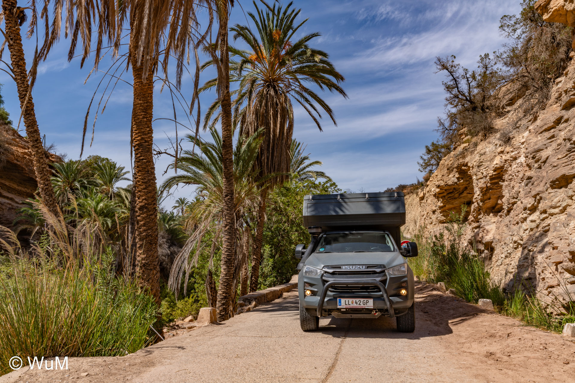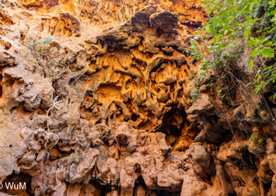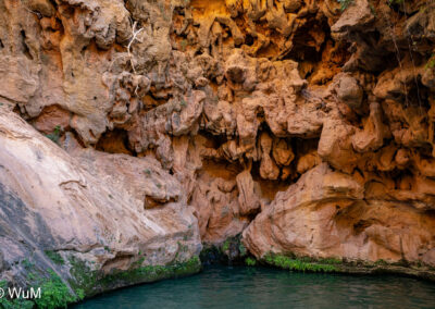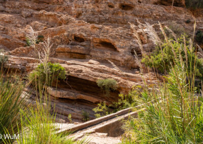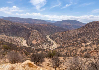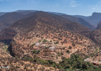 Unser heutiges Ziel sind die Cascades de Imouzzer und das Paradies Valley. Von Tamri zweigen wir auf eine schmale aber landschaftlich schöne Straße ins Landesinnere ab. Am Anfang fahren wir an einer Großbaustelle für ein Speicherkraftwerk entlang. Hier wurde die Straße neu angelegt und ist in einem entsprechend guten Zustand. Wir fahren durch kleine Orte – hier müssen die Menschen schon sehr genügsam sein… Entlang von Bananenplantagen und kleinen Oasen gehts weiter bis wir unser Ziel erreichen. Auf Anweisung eines Souvenirverkäufers stellen wir das Auto am Straßenrand ab. Wir sind die einzigen Besucher. Der Weg zu den Kaskaden geht an zahlreichen Souvenirständen vorbei. Ein Guide hat sich uns aufgedrängt, den wir leider nicht mehr los werden. Er ist aber sehr nett und erzählt uns, dass seit drei Jahren fast kein Wasser mehr die Kaskaden herunter fällt. Bei den Kaskaden tummeln sich viele junge Burschen, die von den Felsen in das noch mit Wasser gefüllte Becken springen. Das Becken am Fuße der Kaskaden ist 45 m tief. Jeder Souvenirhändler will uns etwas verkaufen. Wir können ihre Situation verstehen. Beim Bruder des Guides (auch ein Souvenirhändler) trinken wir noch einen Kaffee, dann gehts durch das Paradies Valley Richtung Agadir.