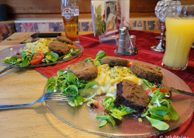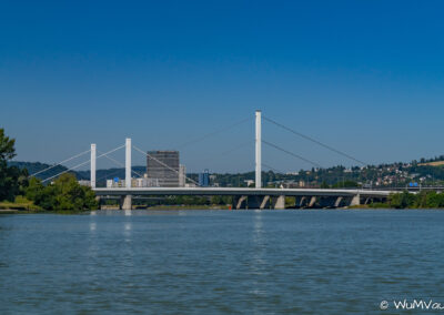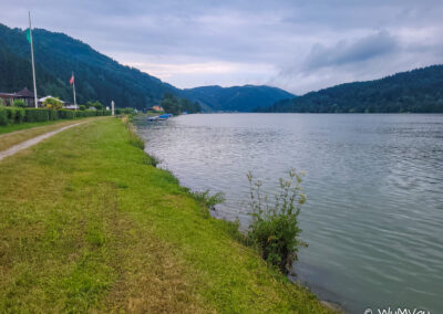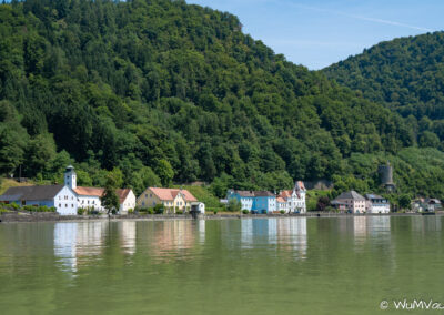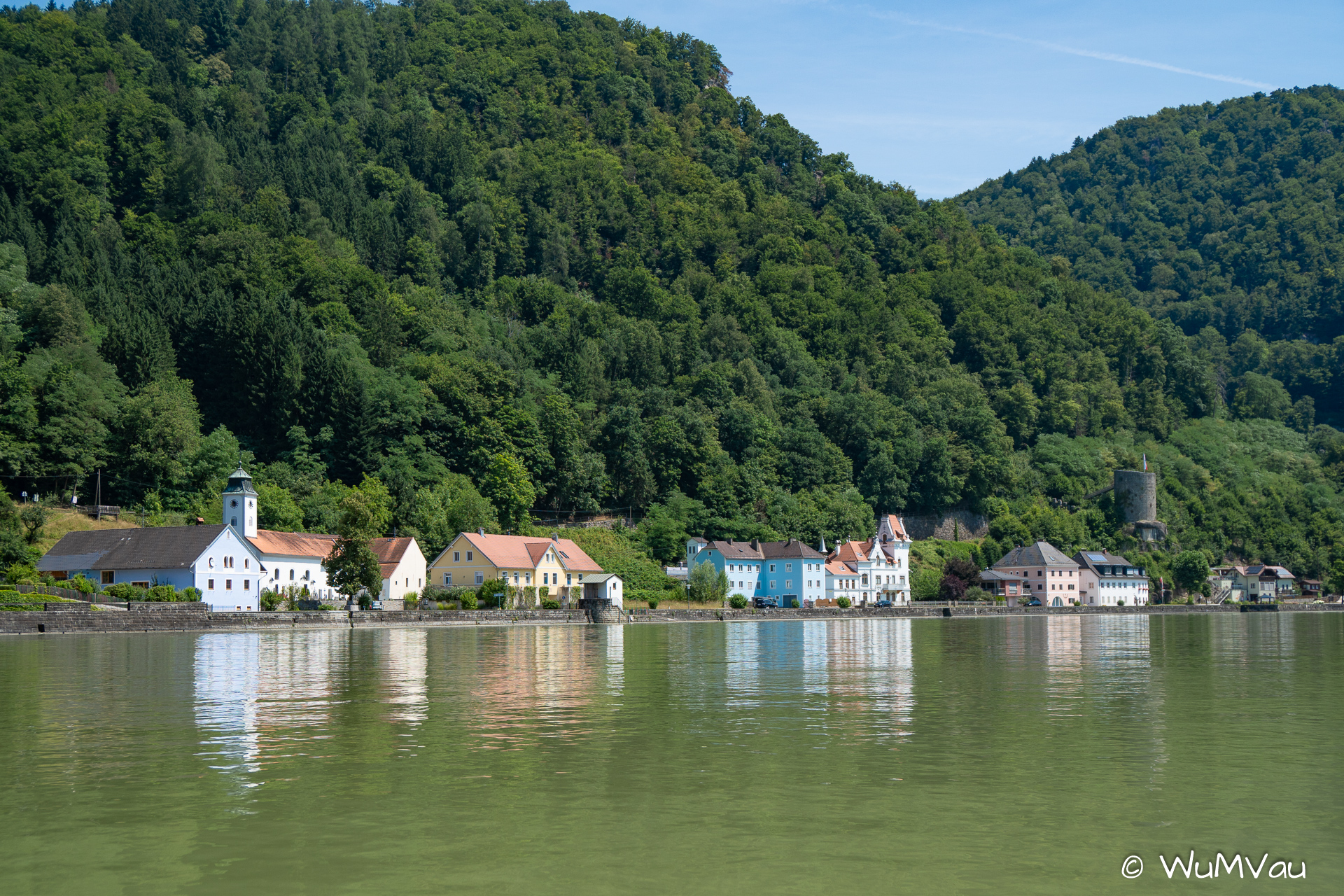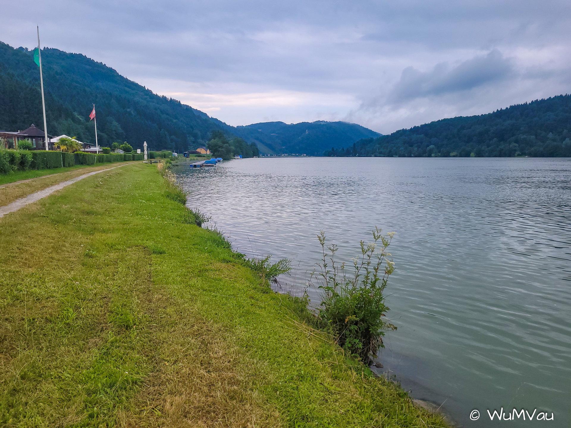 Am nächsten Morgen ist es schon in der Früh ziemlich warm. Wir fahren weiter, passieren Grein, St. Nikola und Sarmingstein. Kurz nach Freyenstein machen wir beim Gasthof & Camping Krenn für heute Schluss. Der Wetterbericht verheißt nichts Gutes und um 17 Uhr beginnt es zu stürmen und zu regnen. Jetzt sitzen wir im Gasthof, haben sehr gut gegessen und schreiben diese Zeilen.