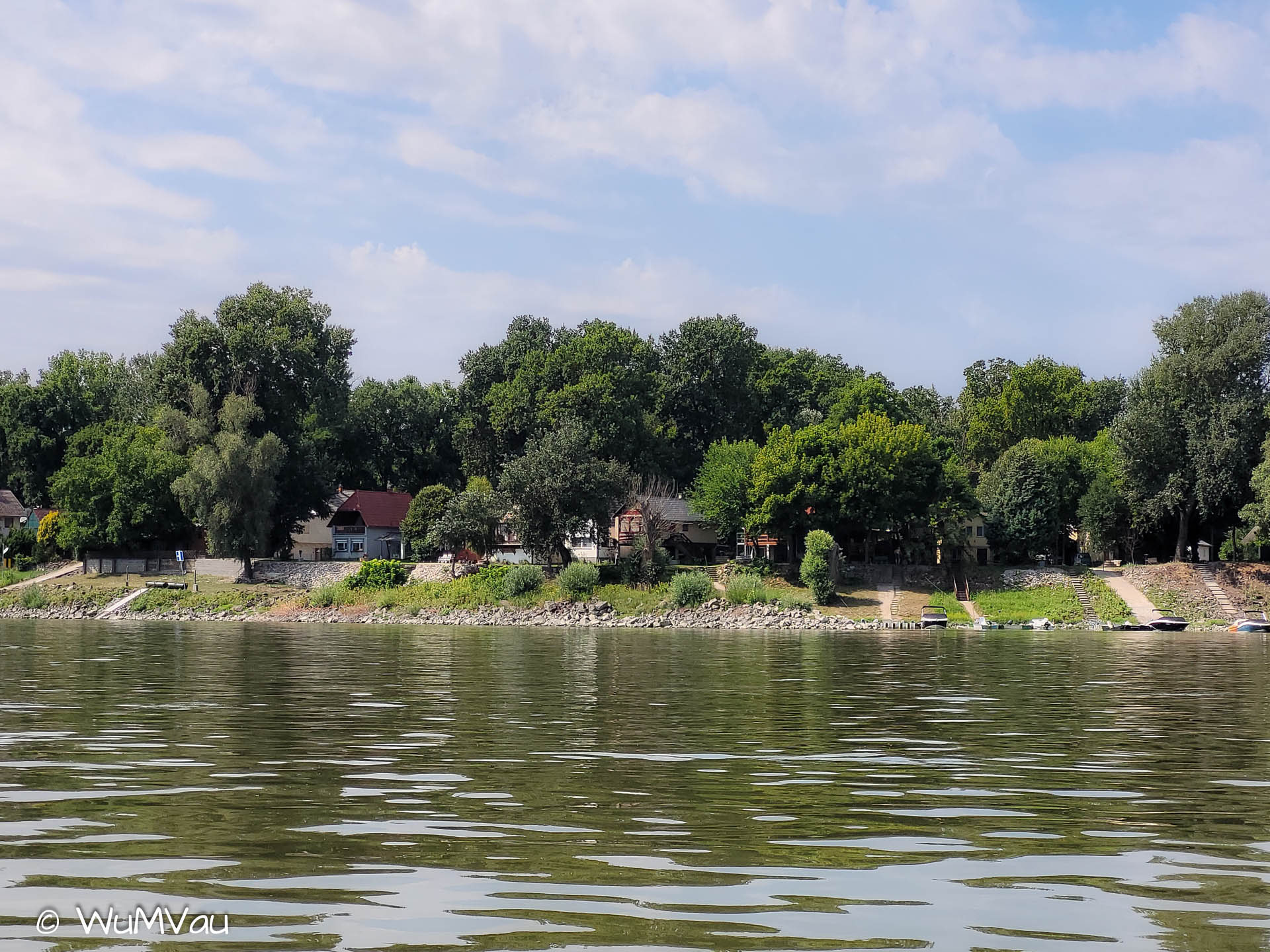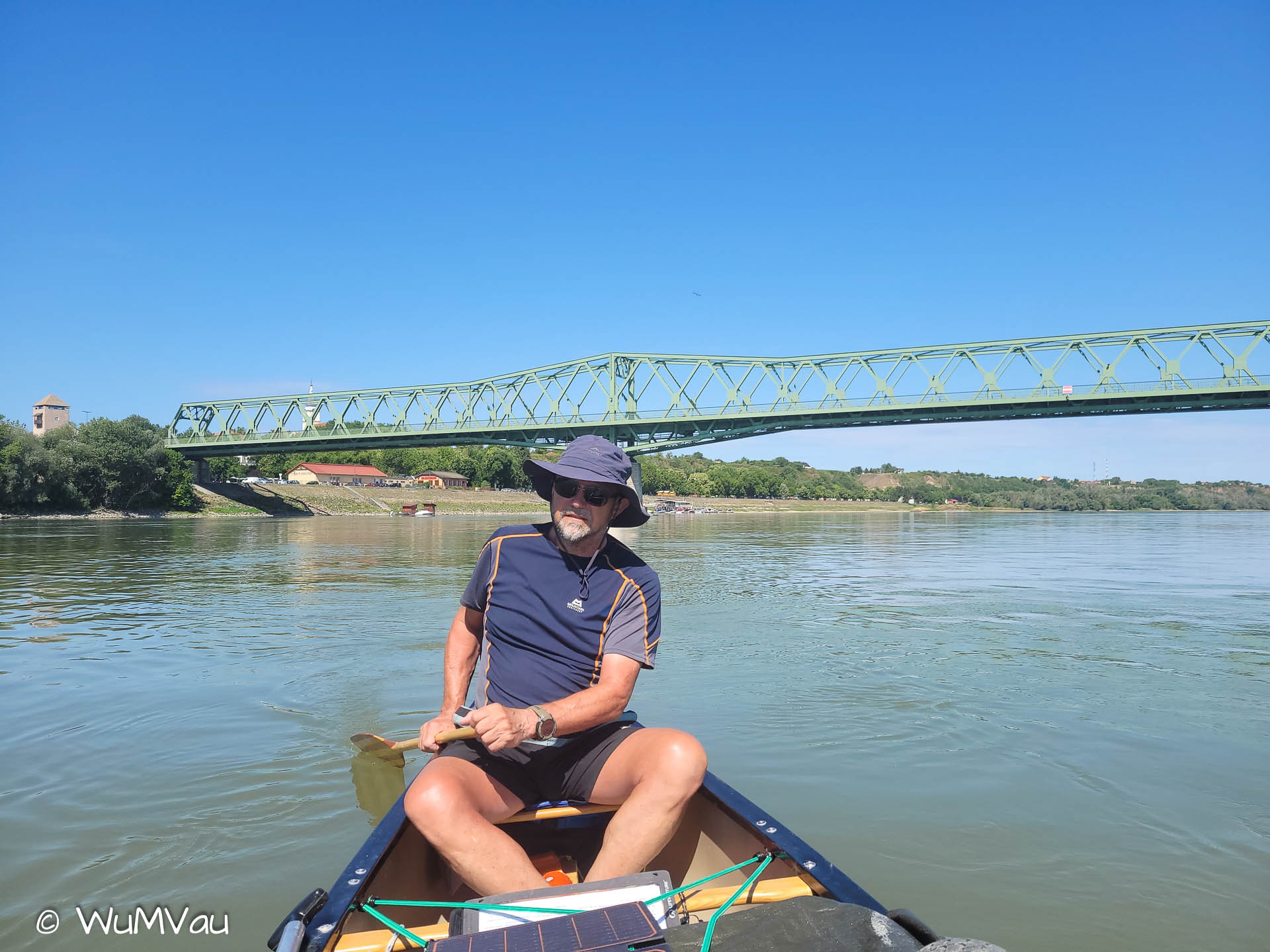 Wir sind heute schon vor 8 Uhr auf dem Wasser und geben richtig Gas. In Dunaföldvar möchten wir auf einen Kaffee gehen, aber die Lokale haben noch nicht geöffnet. Wir paddeln deshalb 20 km weiter. Zwischendurch gehen wir baden, es ist sehr warm. Beim nächsten Versuch gibt es zwar Kaffee aber nichts dazu… eine Pause tut auch gut. In Paks gehe ich noch einkaufen, dann suchen wir uns einen Lagerplatz. Heute schaffen wir 58 Kilometer.