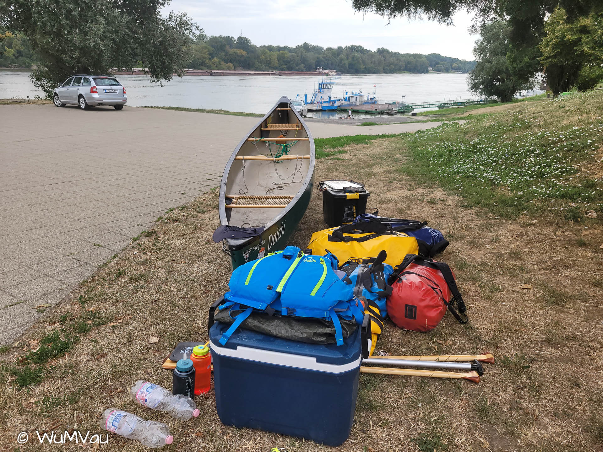 Nach dem Frühstück packen wir für die Heimreise ein. Wir sind schon kurz vor 7 Uhr auf dem Wasser. Es ist bewölkt und zeitweise tröpfelt es sogar. Um 9:30 Uhr haben wir unser Ziel erreicht – Stromkilometer 1447, Mohacs. Jetzt beginnt die Suche nach einer Bleibe für unsere Ausrüstung. Beim Kanuverleih ist man so nett und wir können unsere Sachen zwischenlagern. Mittlerweile scheint wieder die Sonne und es ist so heiß wie in den letzten Tagen. Dann gehen wir zum Busbahnhof und fahren mit dem Bus nach Budapest und von dort mit dem Zug nach Hause.