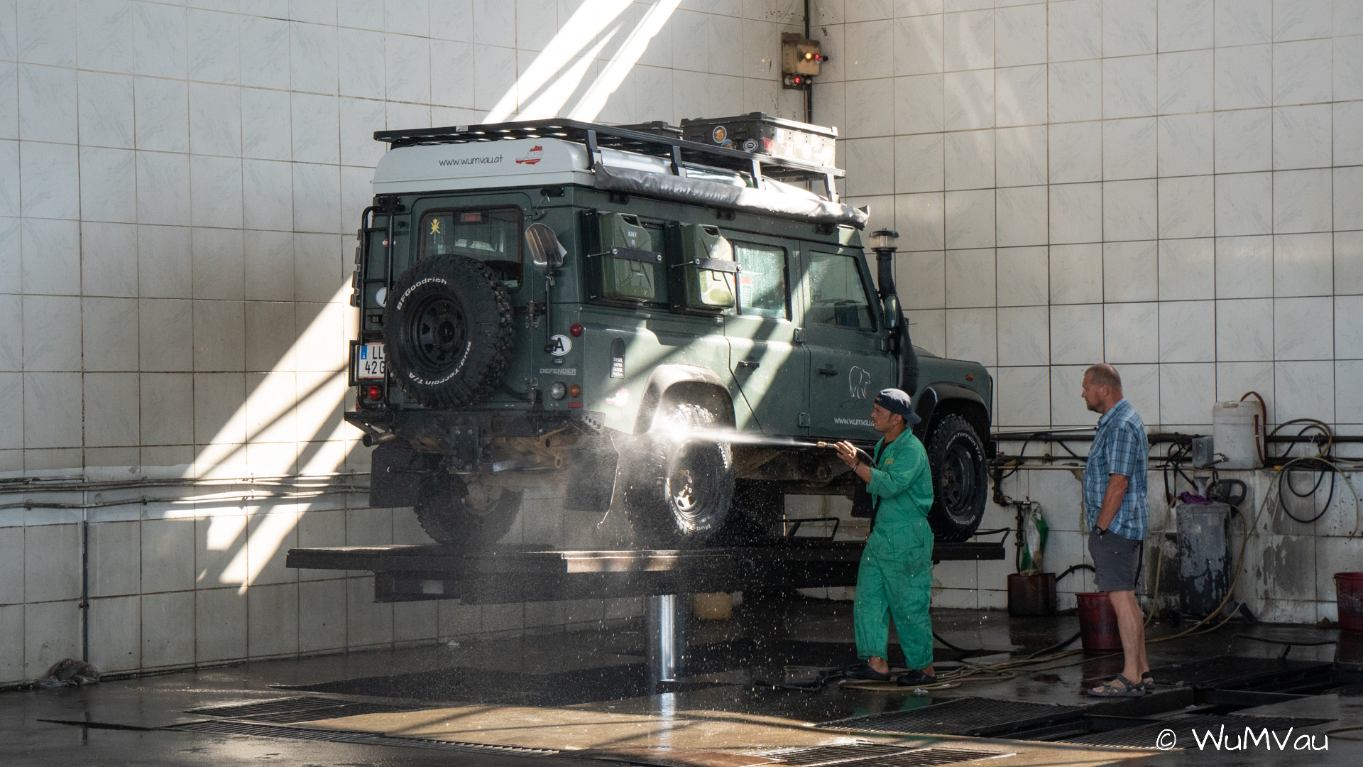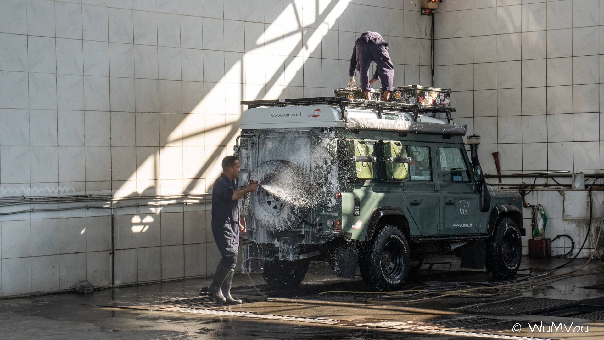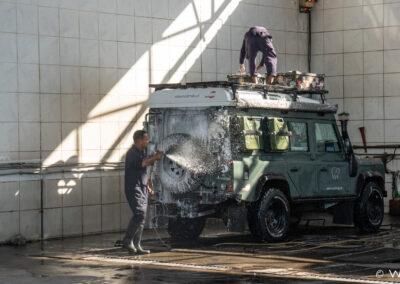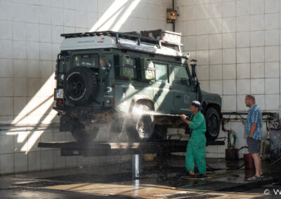 In der Früh beginnen wir bereits unser Auto für die Heimreise vorzubereiten. Wir haben heute nichts großes mehr vor und nutzen so die Zeit. Der Kühlschrank ist bereits leer und wird gereinigt und getrocknet. Die Bettwäsche in der Sonne noch einmal gelüftet und Kleidung etc. für Hotel und Heimreise umgepackt. Auf dem Weg nach Abu Dhabi bekommt unser Landy noch eine Wellnesskur. Die hat er auch schon dringend nötig. Dann gehts ab ins Hotel.